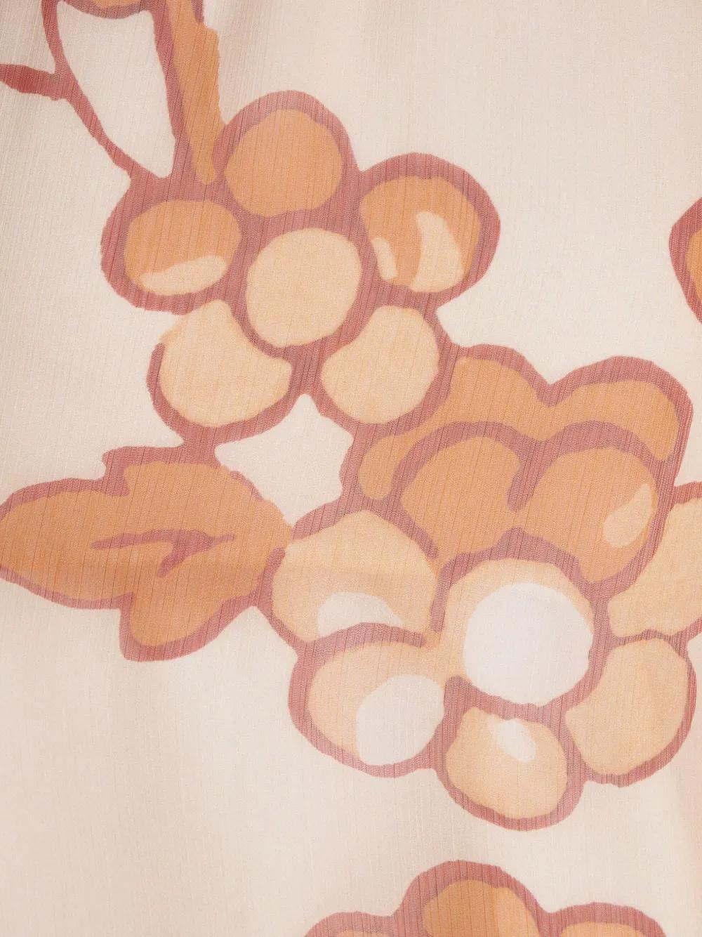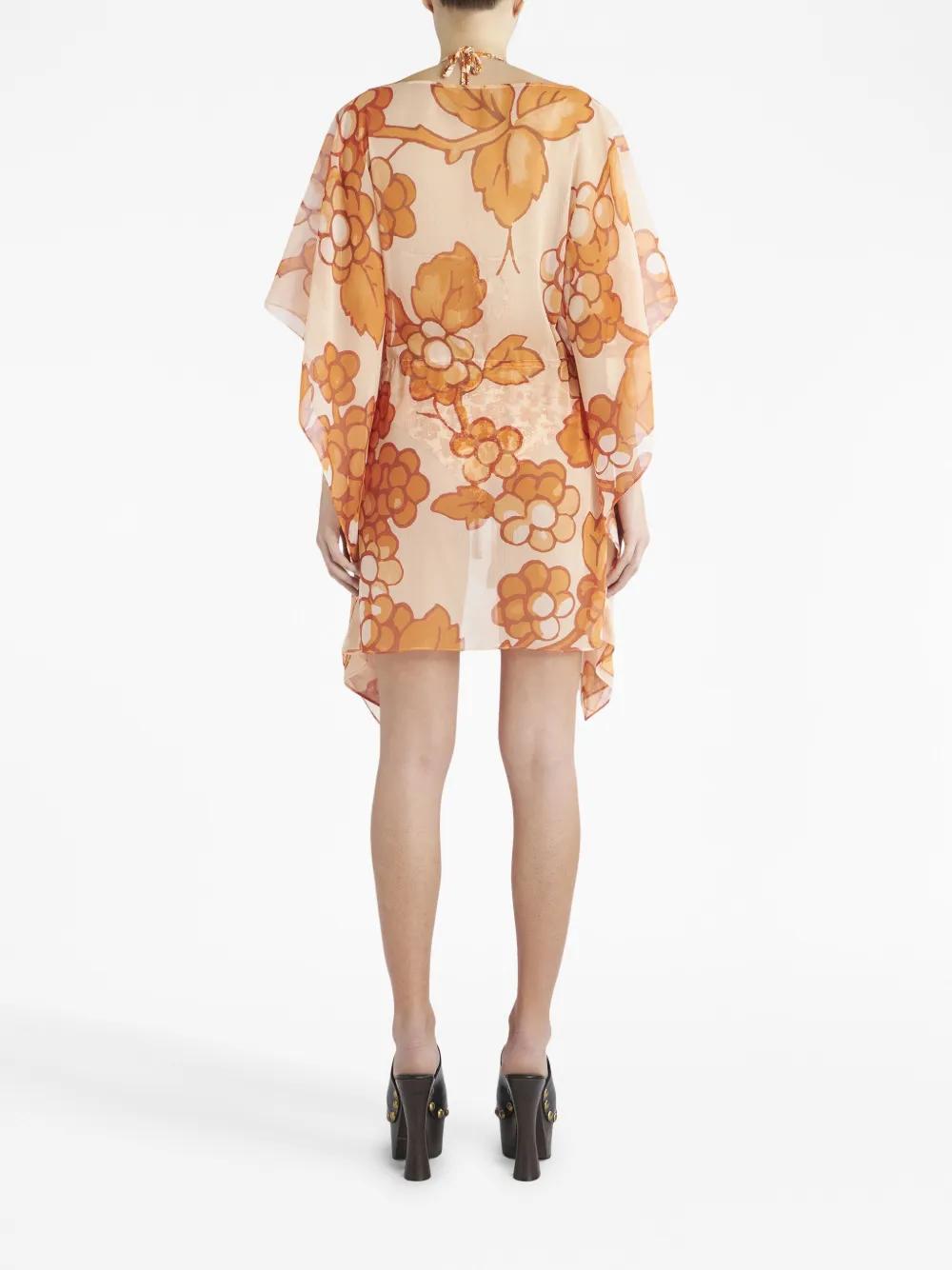 tangerine orange Berry print semi-sheer construction boat neck drawstring fastening waist wide sleeves asymmetric hem