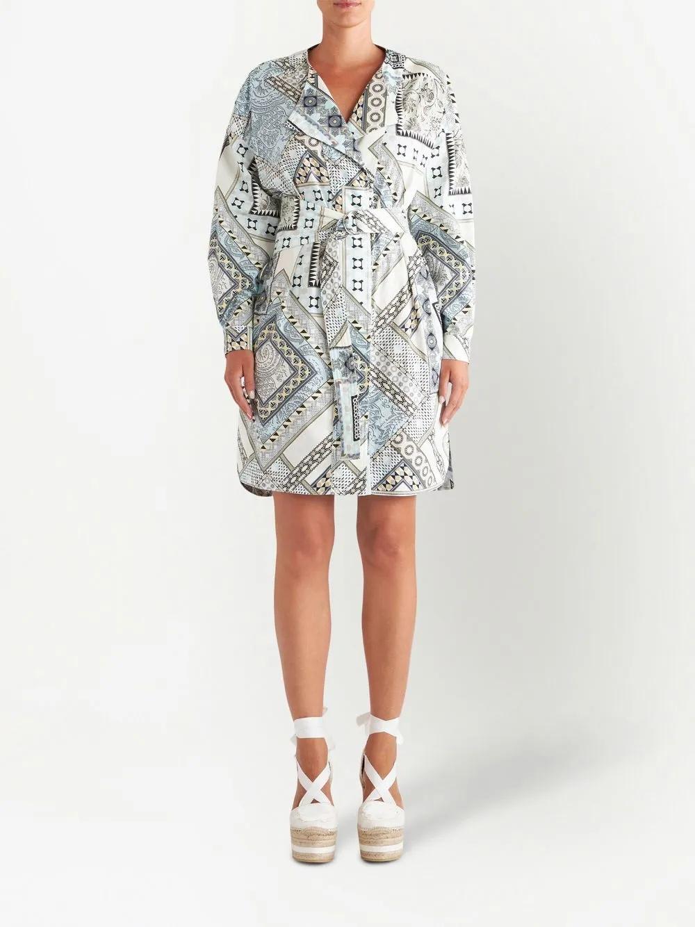 multicolour cotton mix print belted waist long sleeves above-knee length