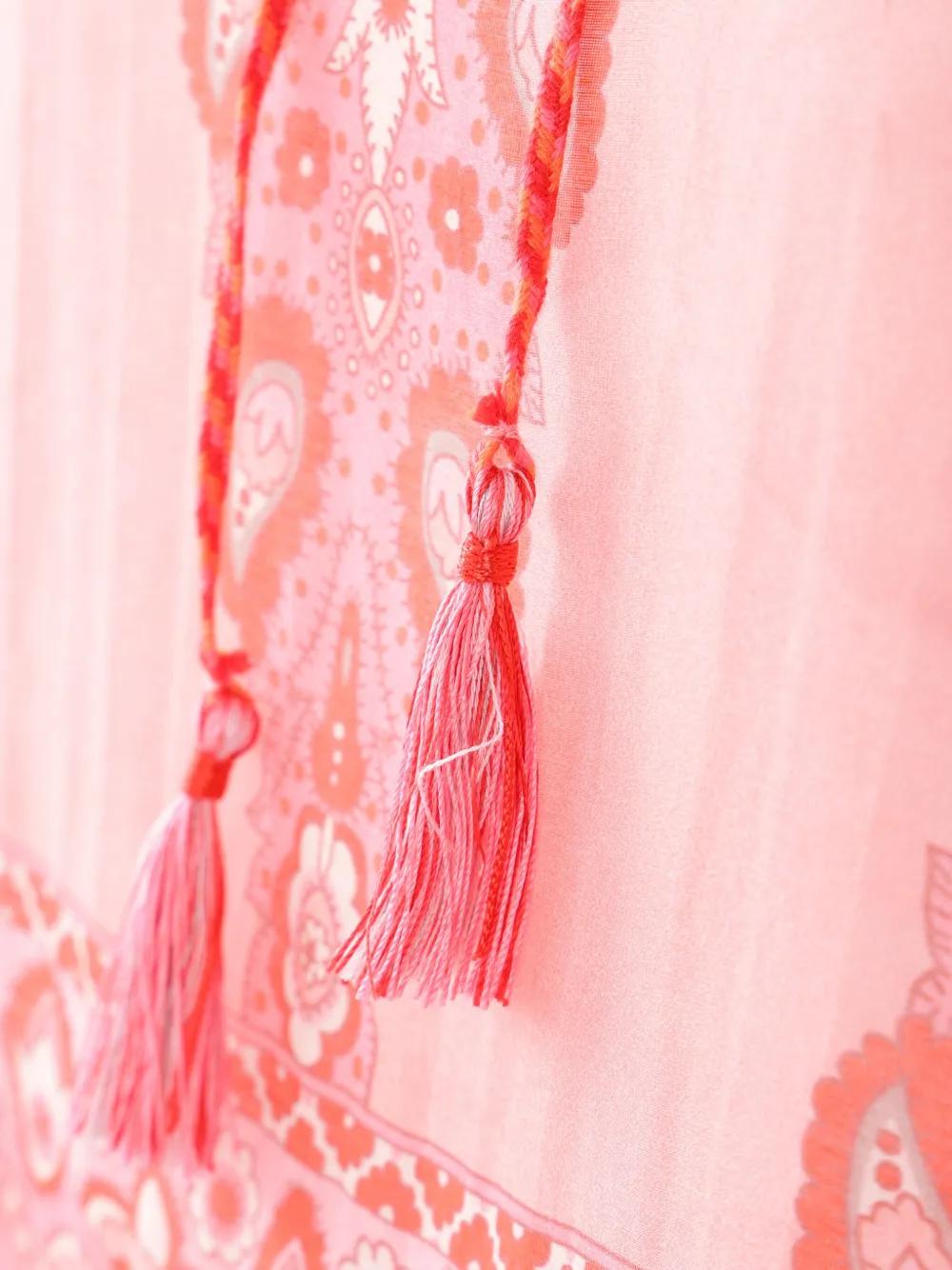 light red front tie fastening buttoned cuffs tassel detail flared hem