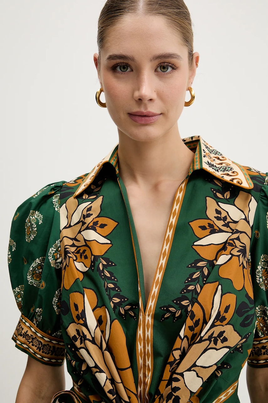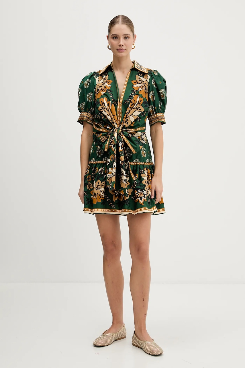 Farm Rio sukienka bawełniana kolor zielony mini rozkloszowana 351134
