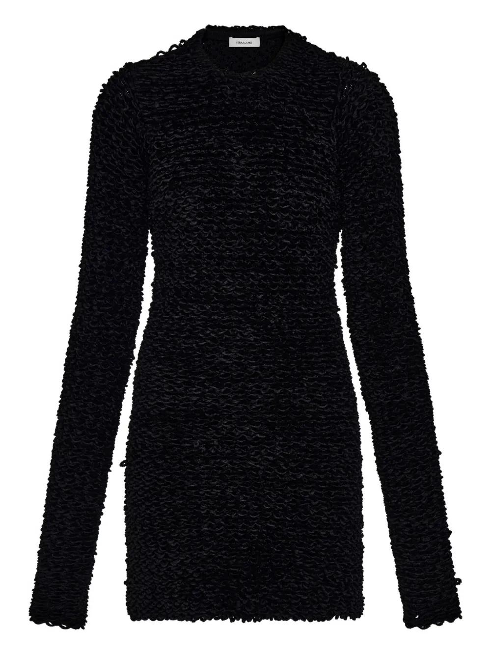 Ferragamo astrakhan-effect long-sleeve mini dress - Black