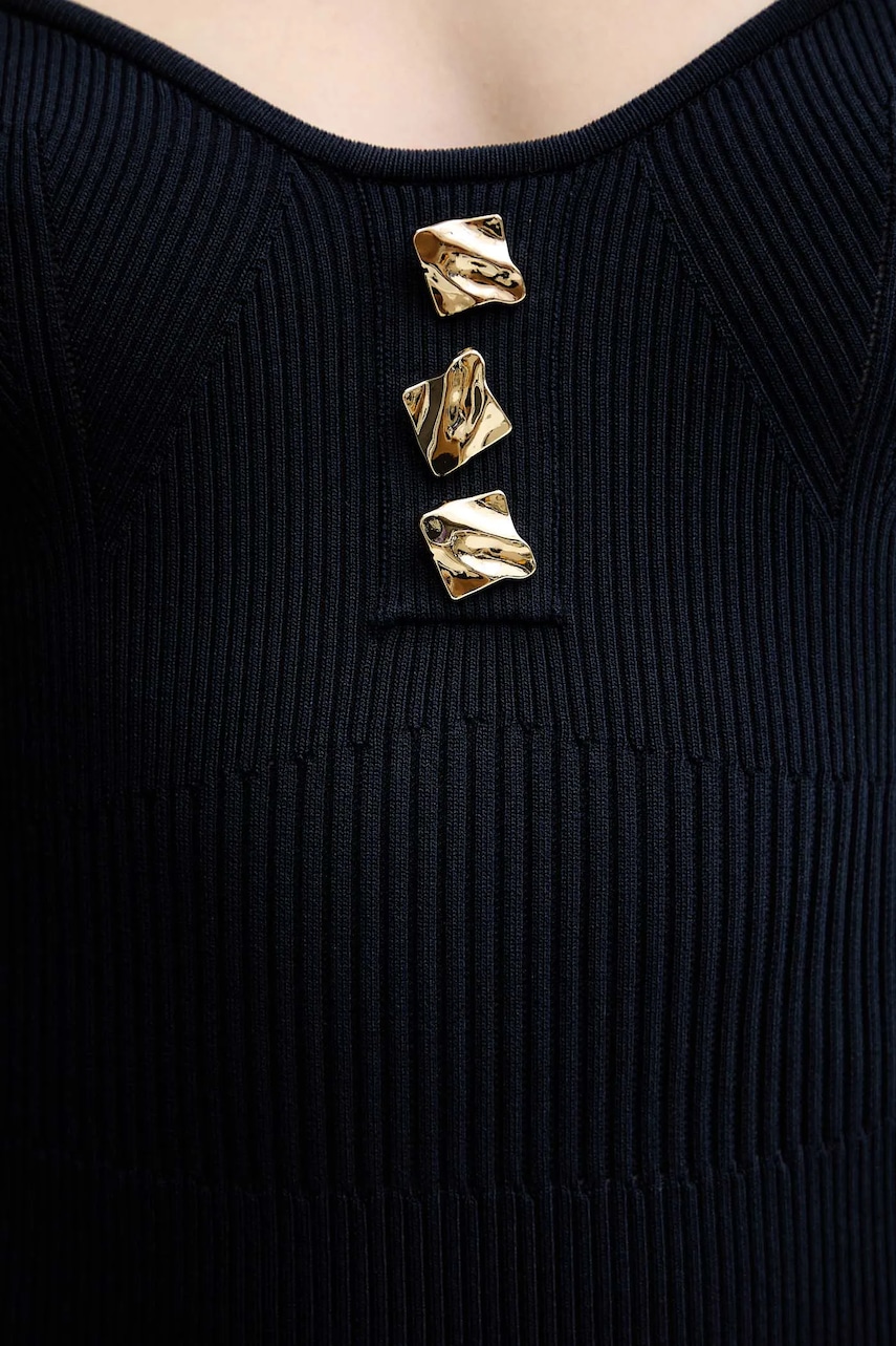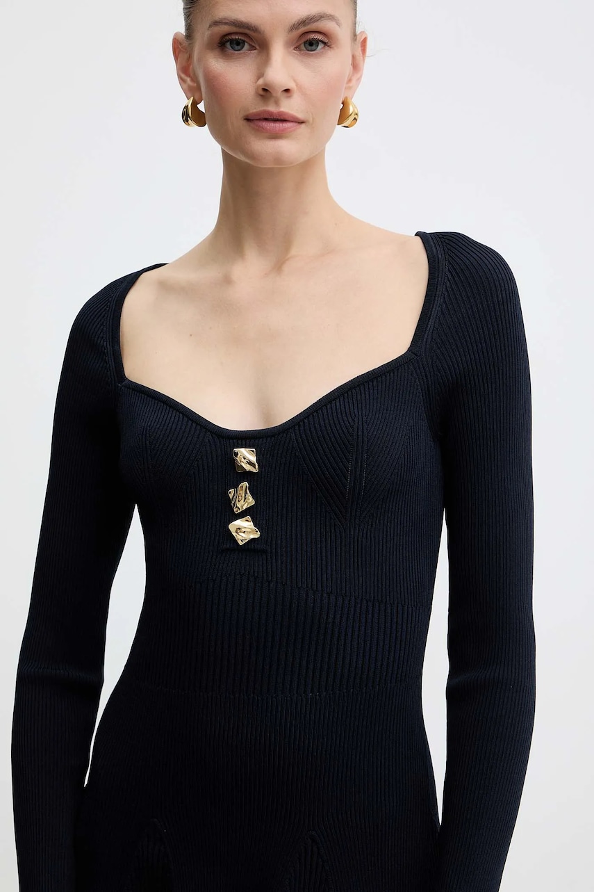 - Dopasowana góra i rozkloszowany dół. - Spiczasty, prążkowany dekolt. - Ozdobne guziki przy dekolcie. - Rękaw raglanowy, dzięki swojej konstrukcji, zapewnia większą swobodę ruchu. - Długość rękawa(mierzona od dekoltu): 62 cm. - Długość sukienki: 88 cm. - Szerokość pod pachami: 31 cm. - Wymiary podane dla rozmiaru: S.