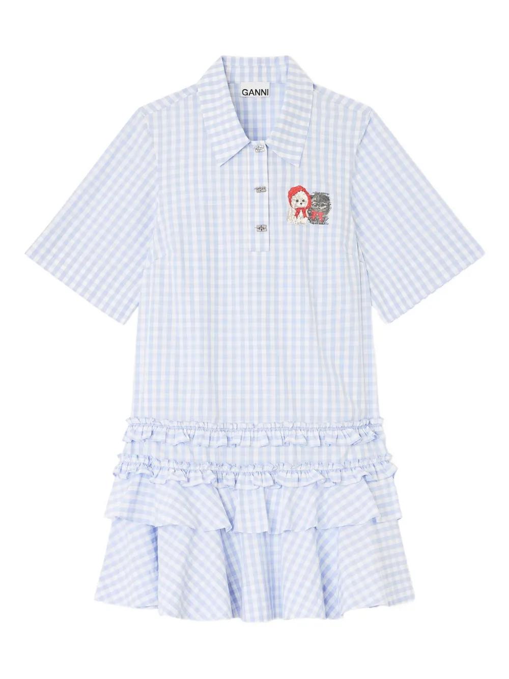 GANNI gingham-pattern ruffled mini dress - Blue