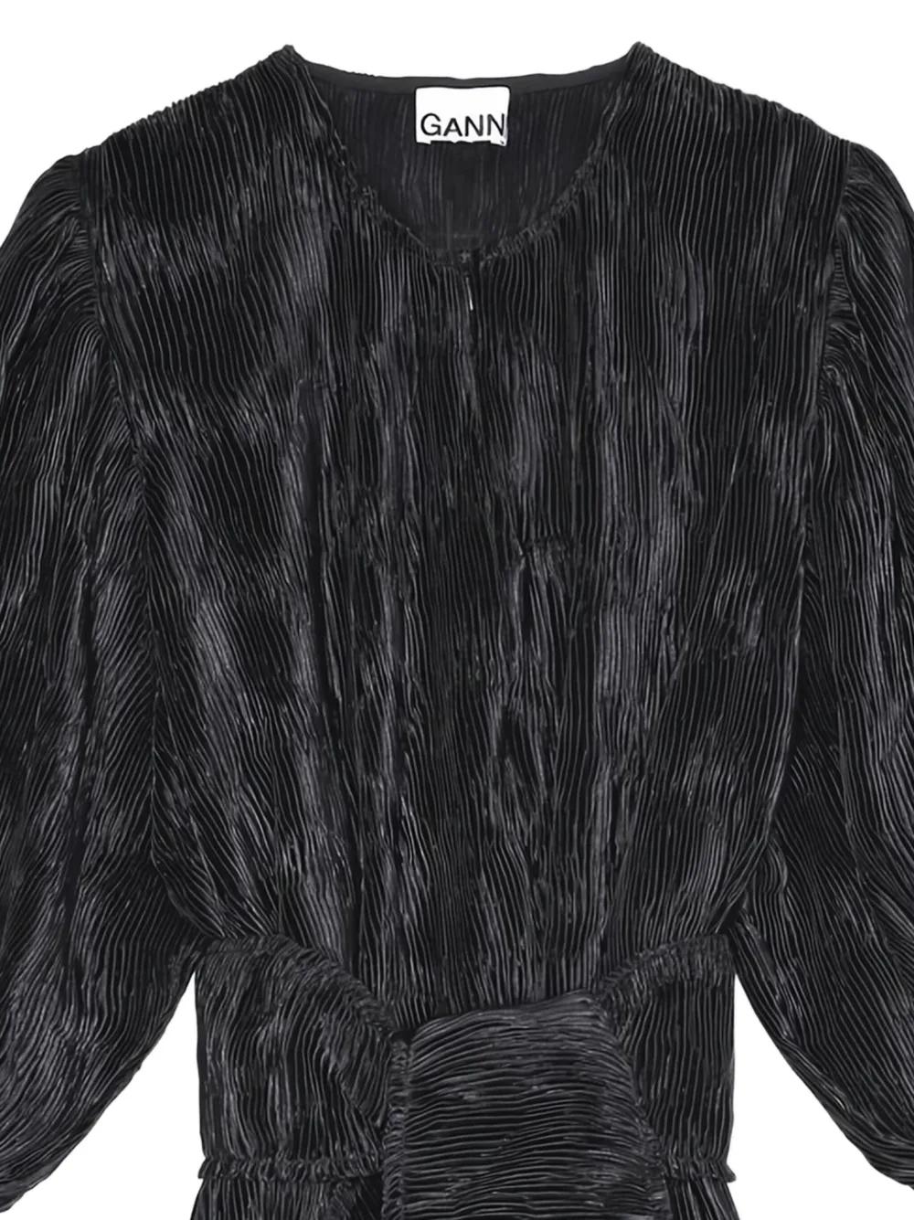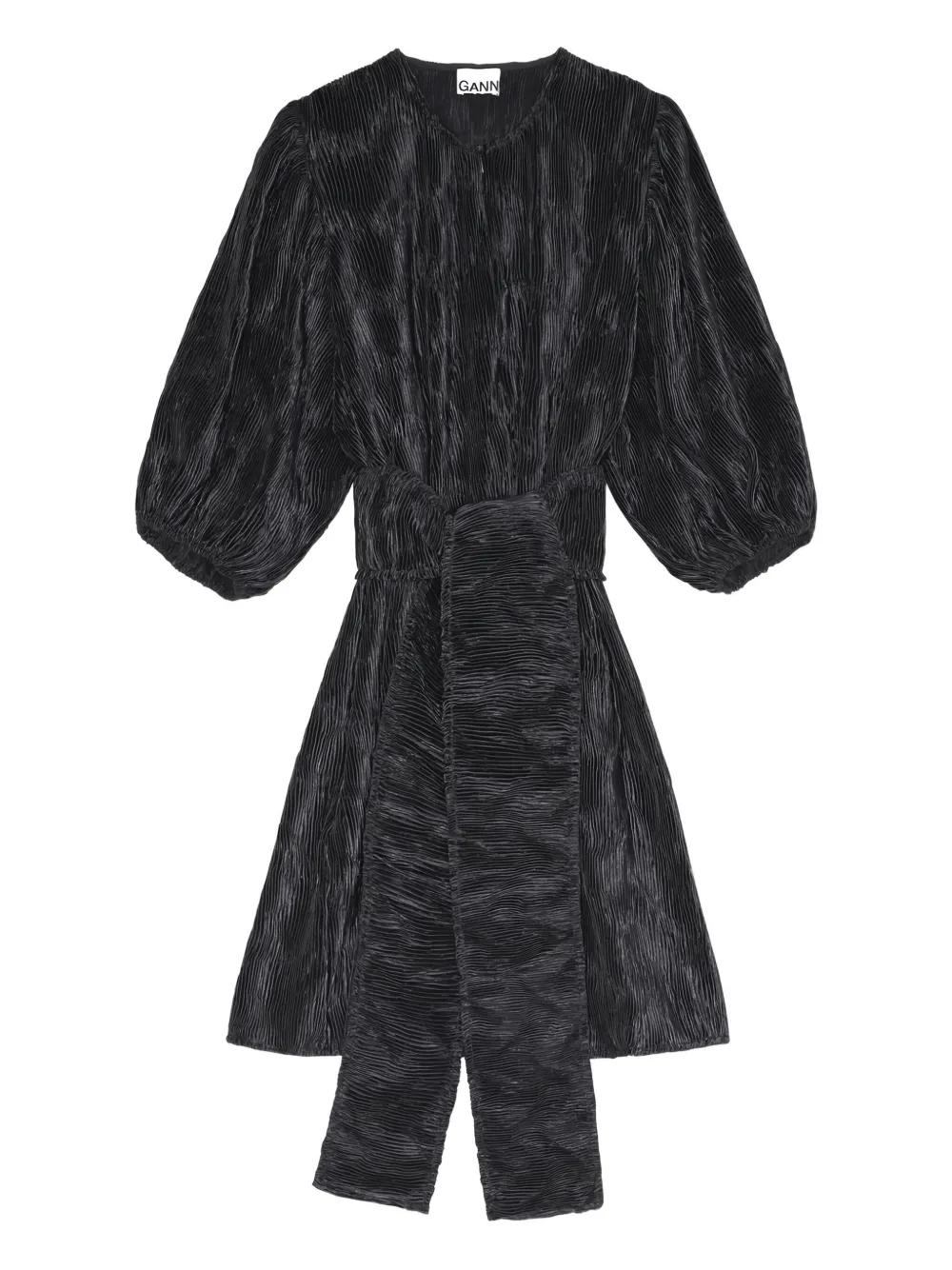 GANNI pleated puff-sleeve mini dress - Black