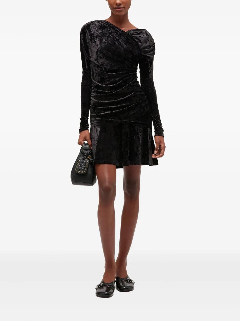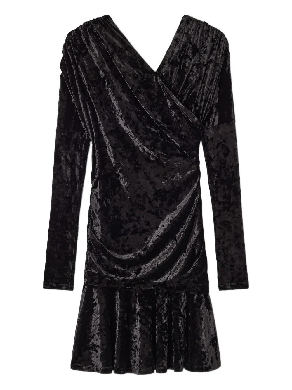 black knit texture cutout at the rear long sleeves bell cuffs mini length