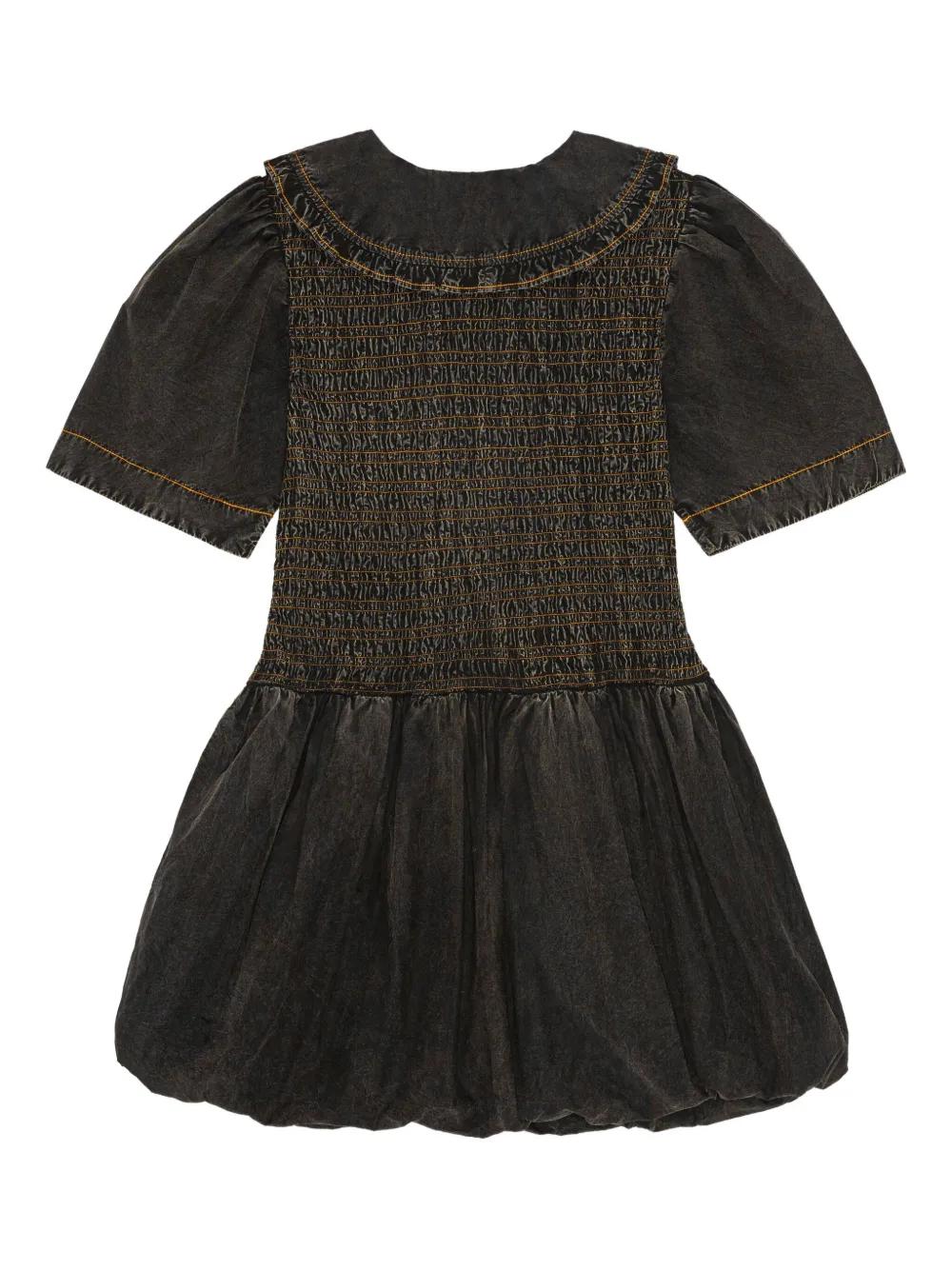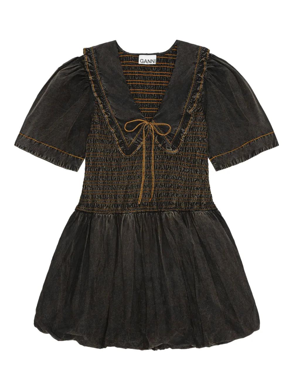 GANNI smocked dress with puff sleeves - Black