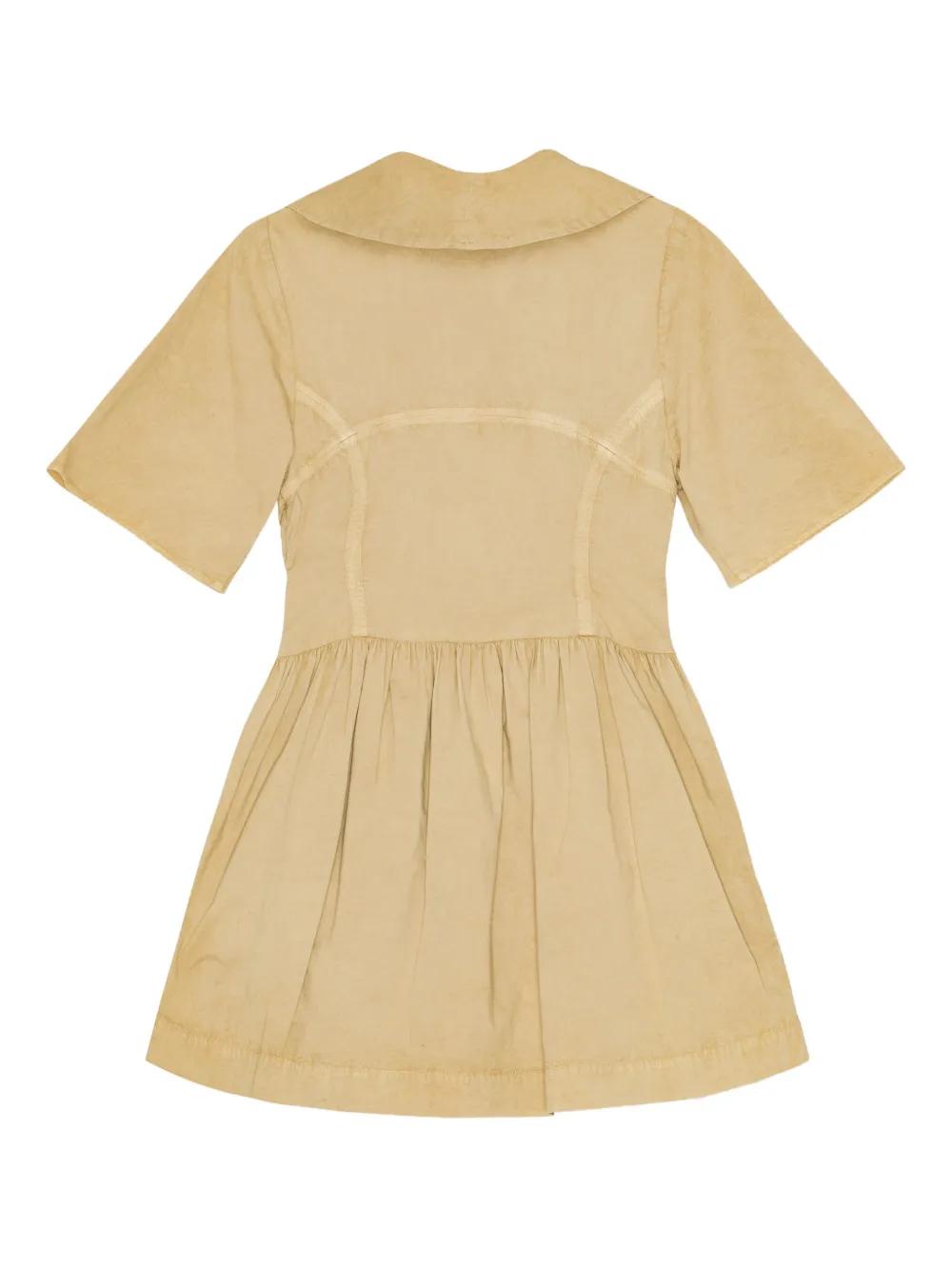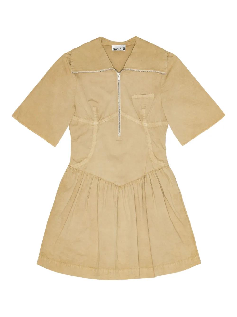 sand beige short front zip fastening spread collar chest welt pocket short sleeves
