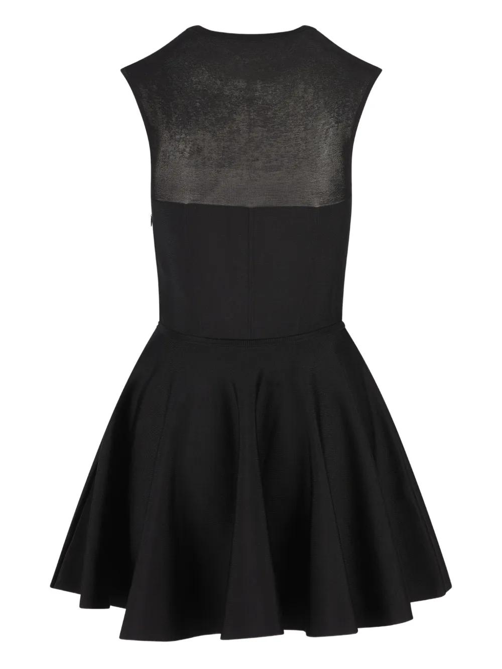 black sleeveless flared skirt round neck concealed zip fastening