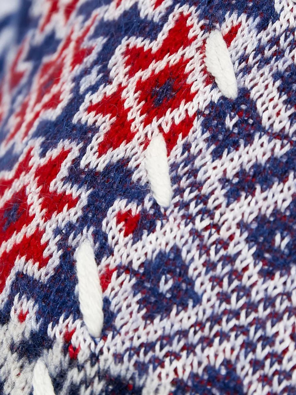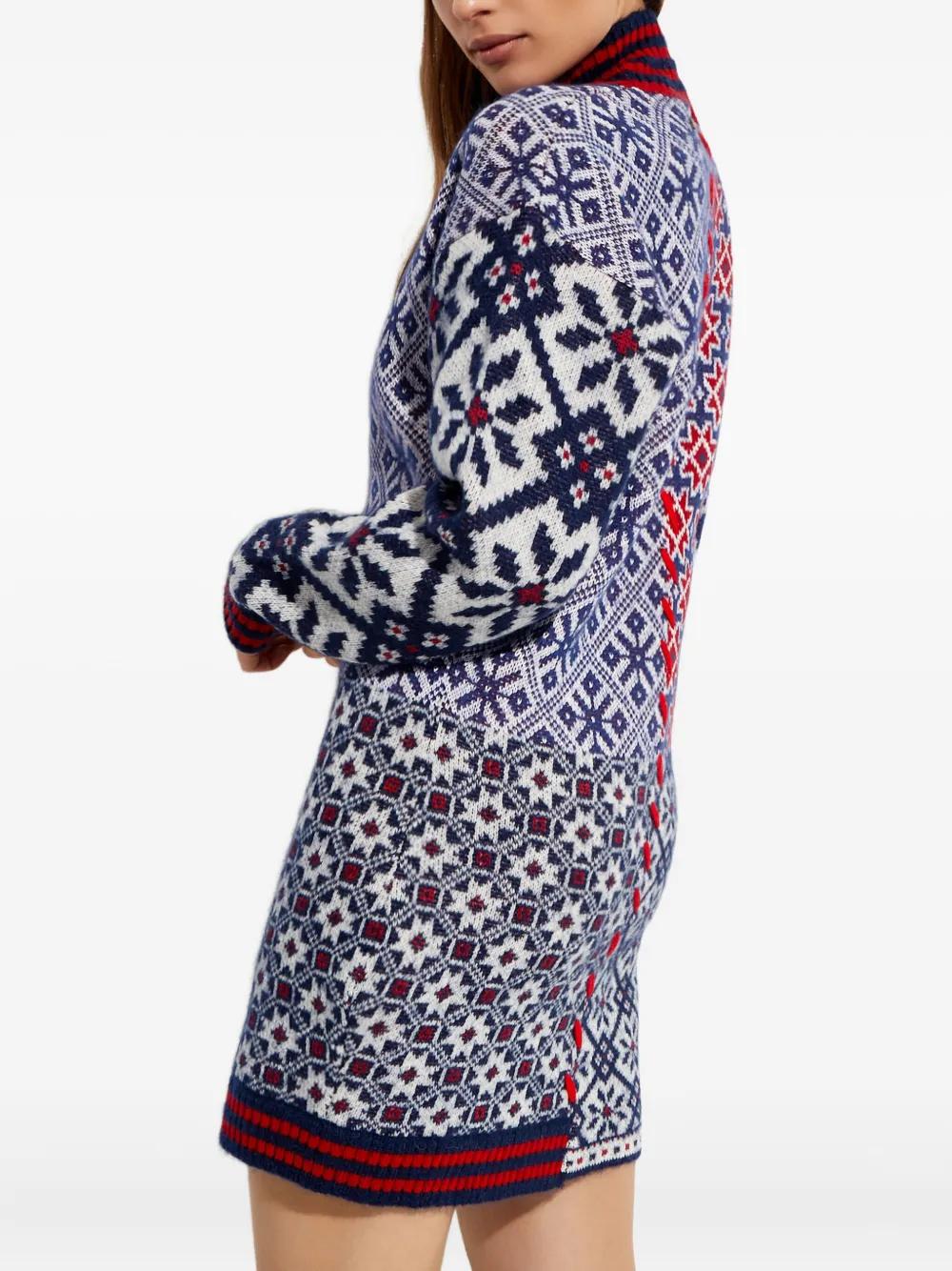 blue and multicolor patchwork design roll neck front stitching dropped shoulders ribbed trims