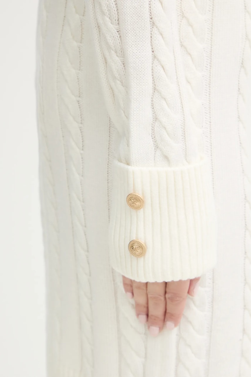 - Zawiera plastik pochodzący z recyklingu. - Prosty, nie blokujący ruchów fason. - Klasyczny, okrągły dekolt. - Gruba, elastyczna dzianina. - Ozdobne guziki. - Długość rękawa: 62 cm. - Długość: 90 cm. - Szerokość pod pachami: 43 cm. - Wymiary podane dla rozmiaru: S.