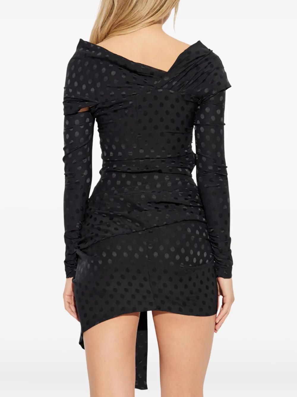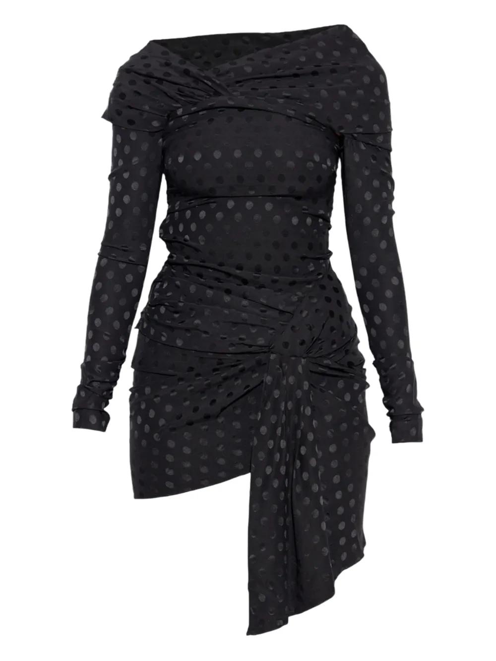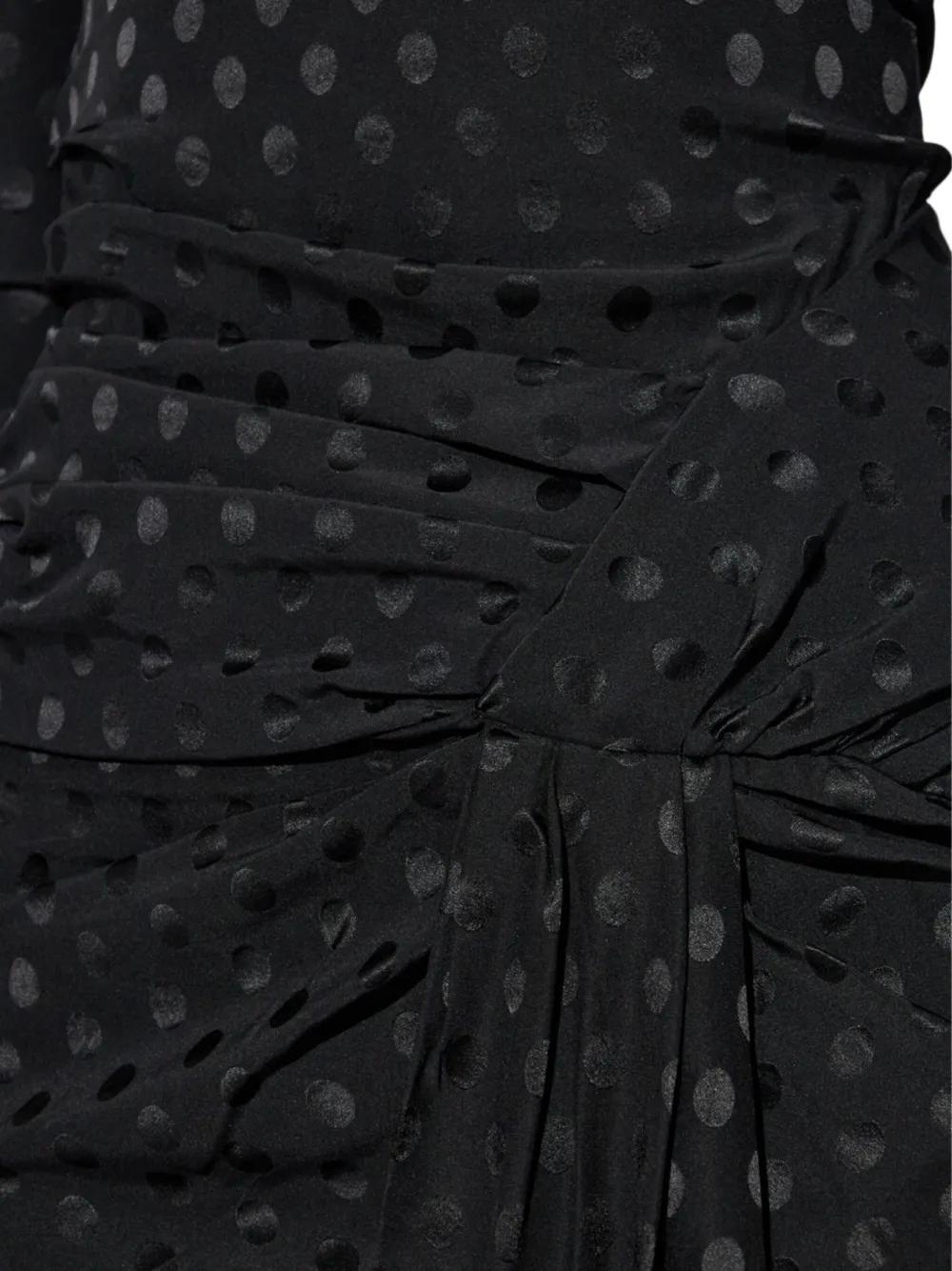 black polka-dot pattern draped detailing long sleeves knot detail asymmetric hem