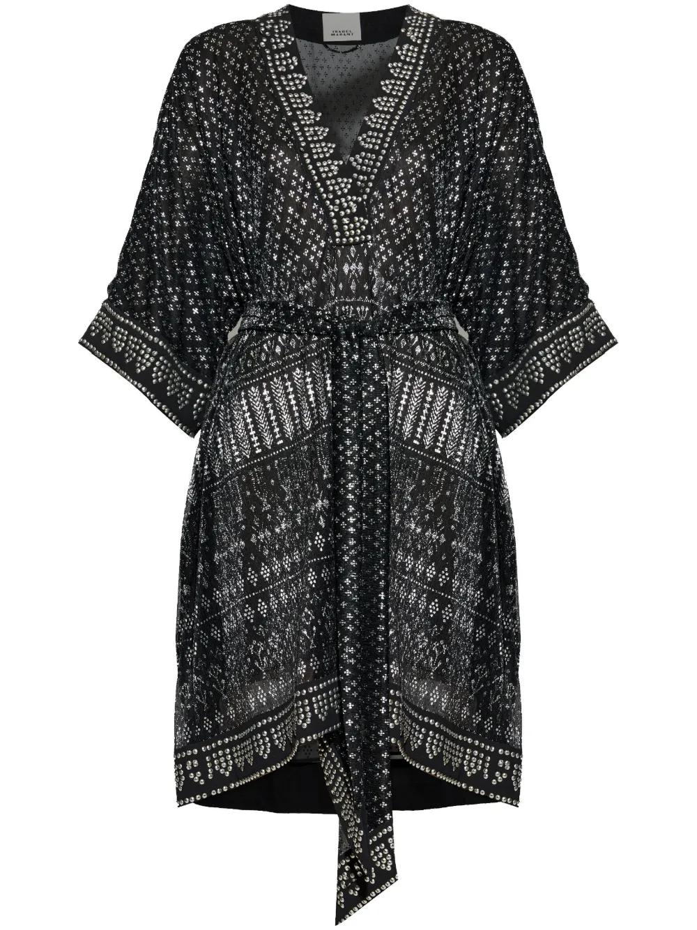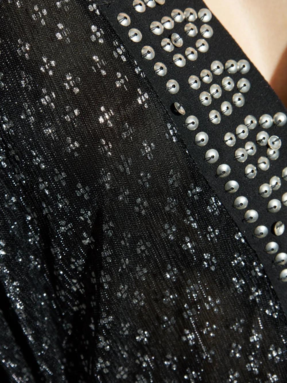 black stud detailing plunging V-neck belted waist three-quarter length sleeves