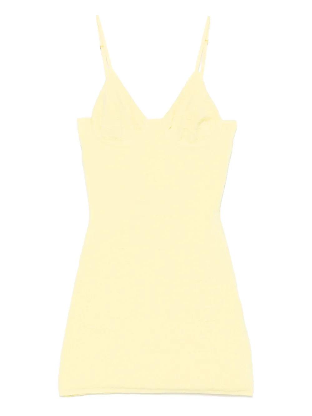 light yellow adjustable spaghetti straps embossed crocodile effect logo patch to the rear plunging V-neck