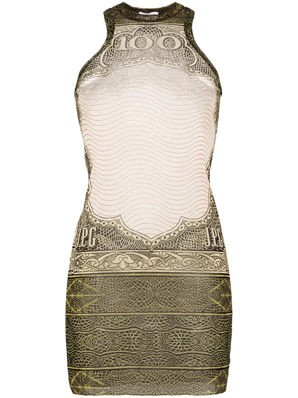 Jean Paul Gaultier Cartouche-print tulle mini dress - Green