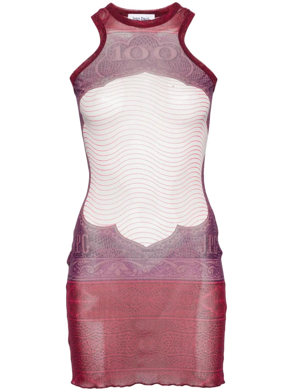 Jean Paul Gaultier Cartouche-print tulle mini dress - Red