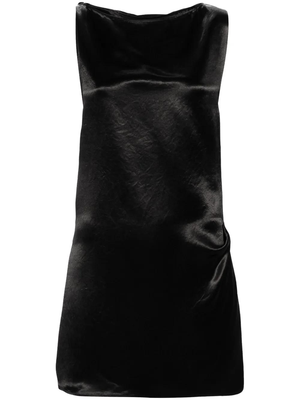 black satin finish round neck rear corset lace-up fastening concealed side zip fastening sleeveless open back straight hem thigh-length