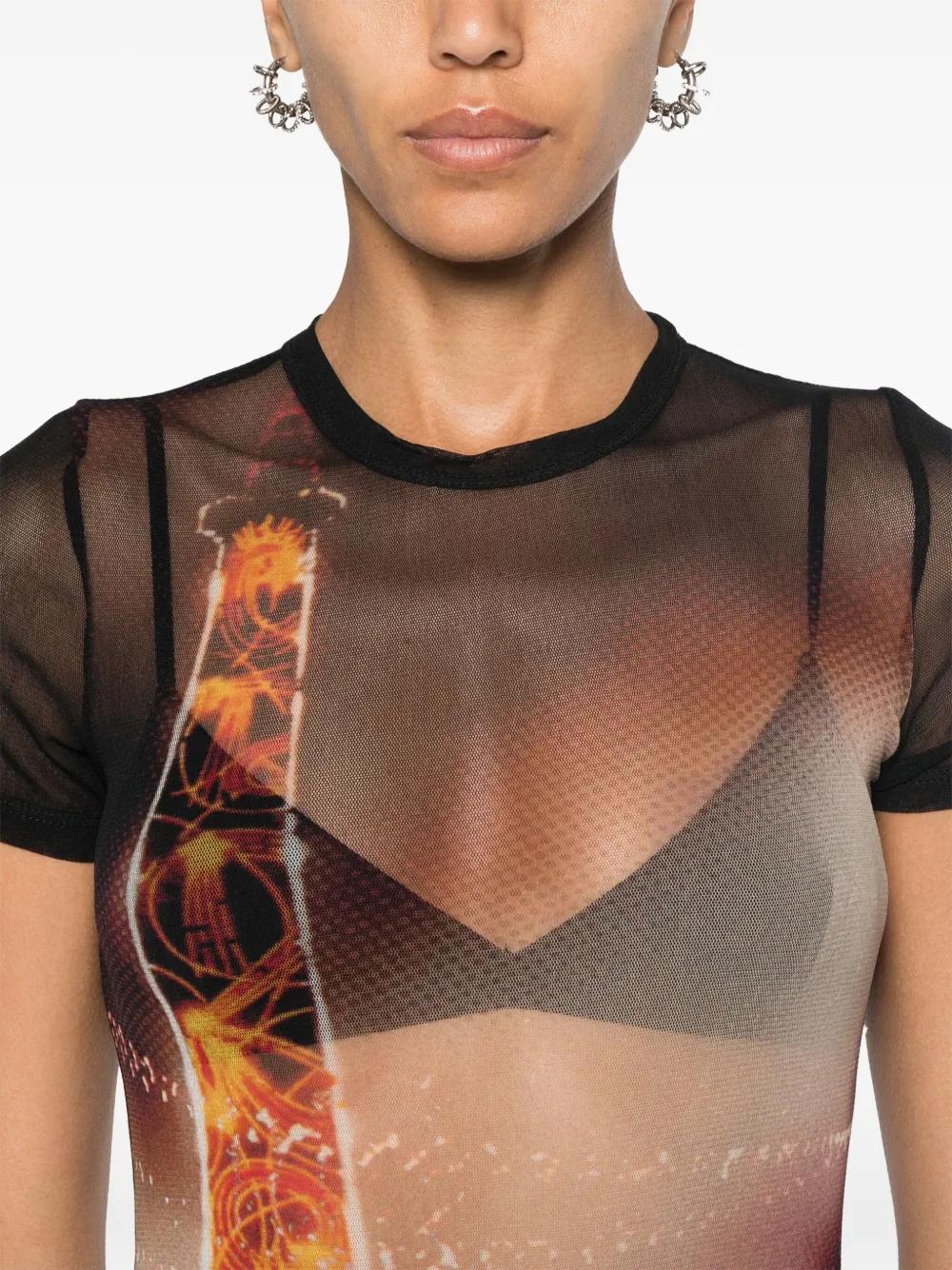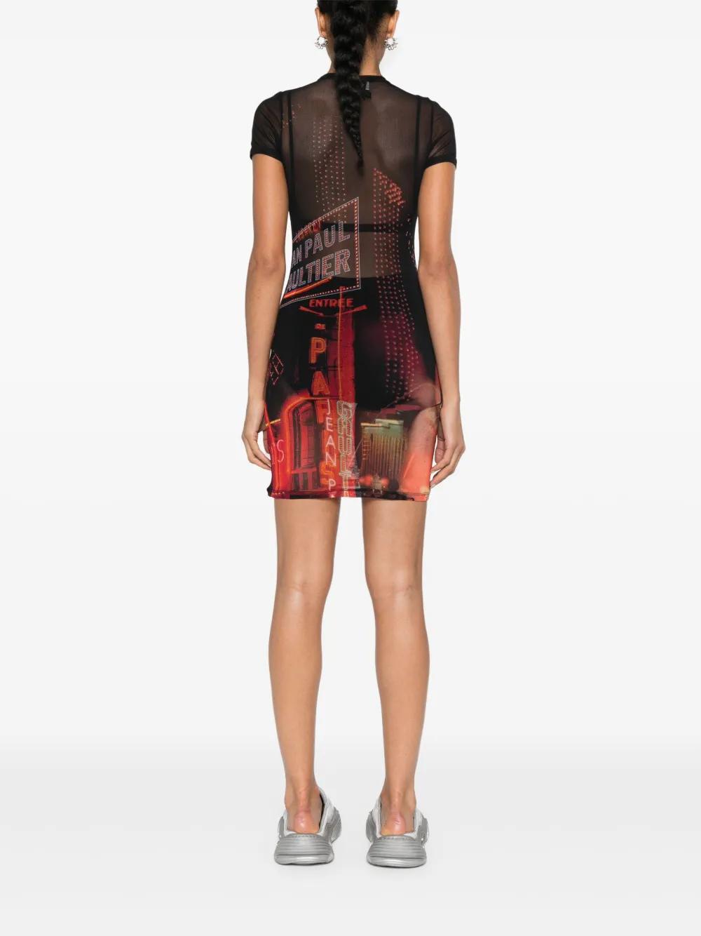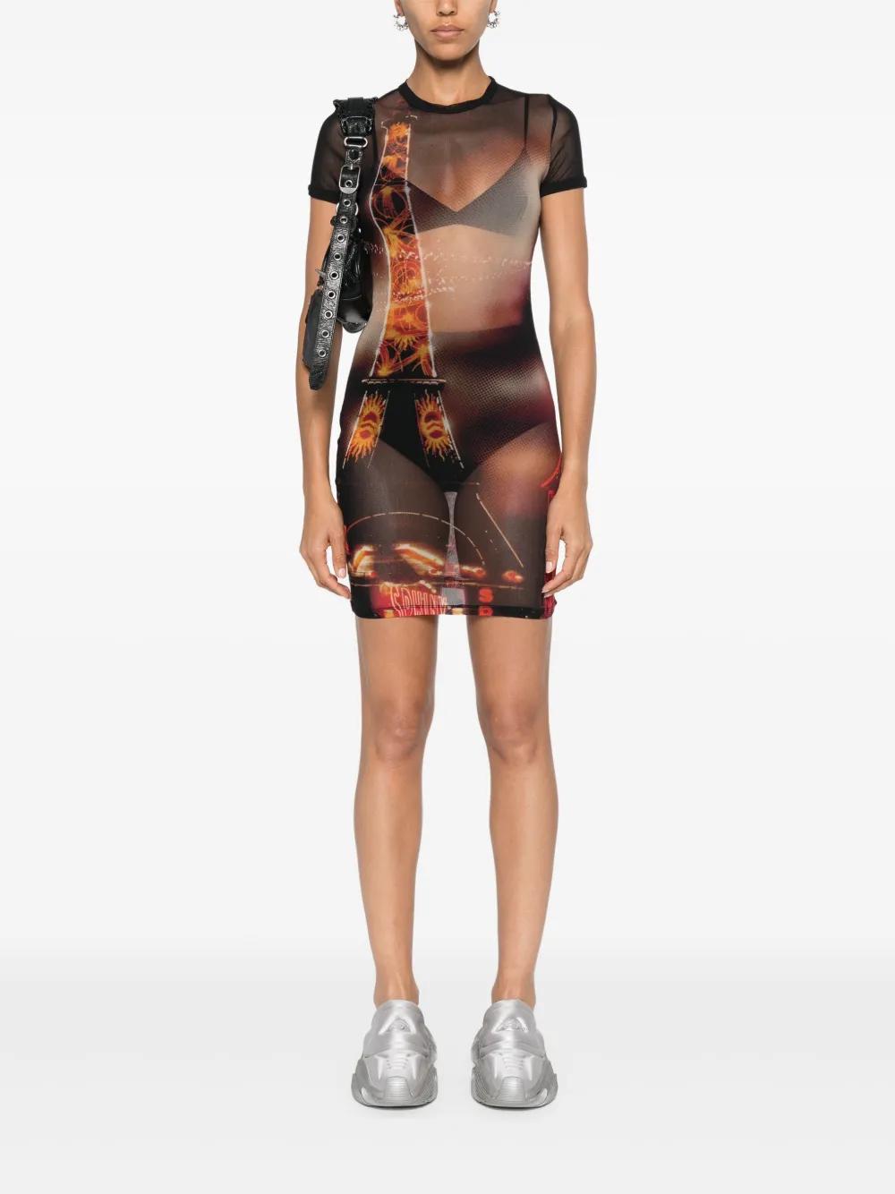 Jean Paul Gaultier Pigalle-print mesh mini dress - Black