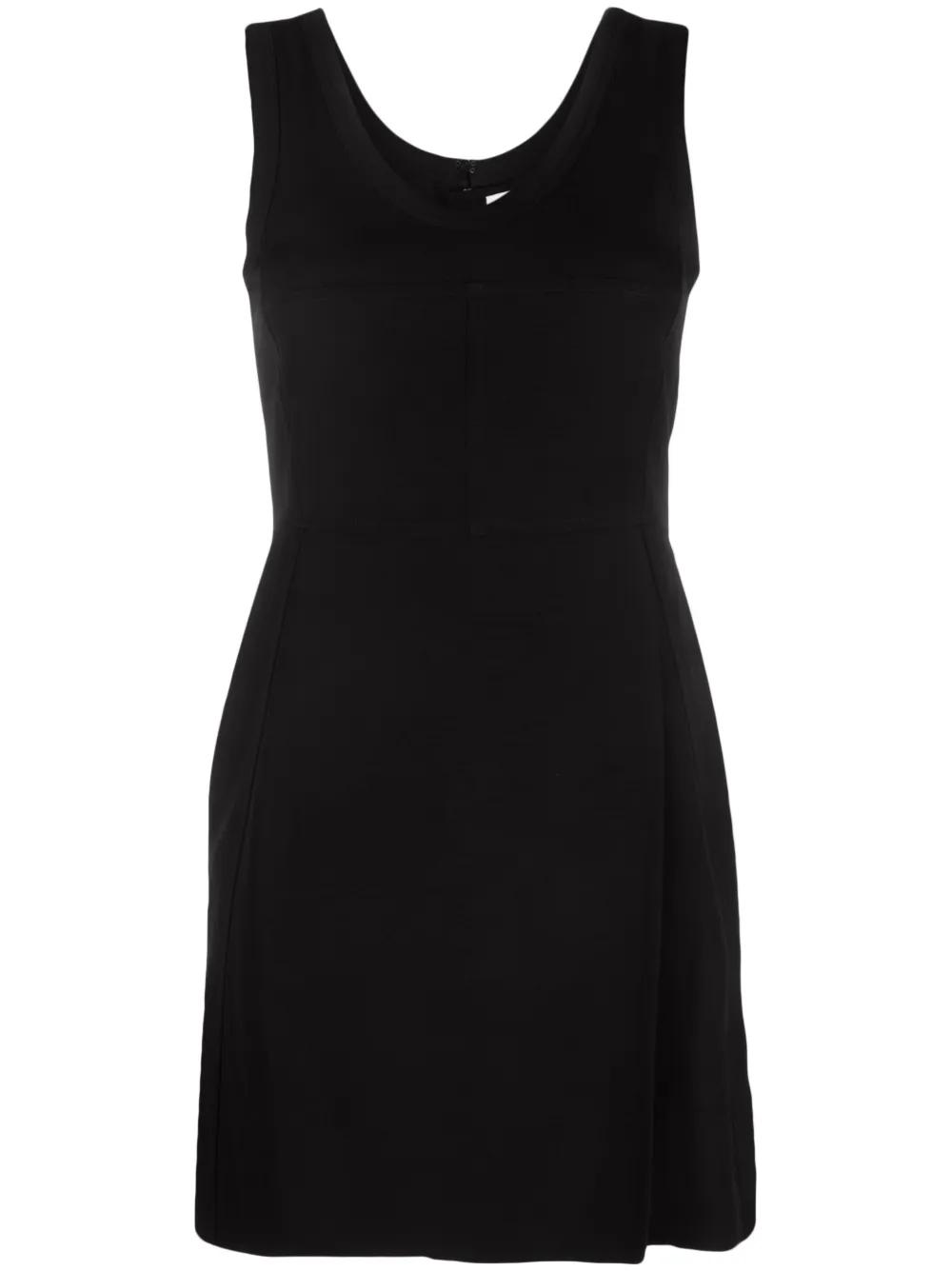 black scoop neck rear zip fastening sleeveless A-line thigh-length