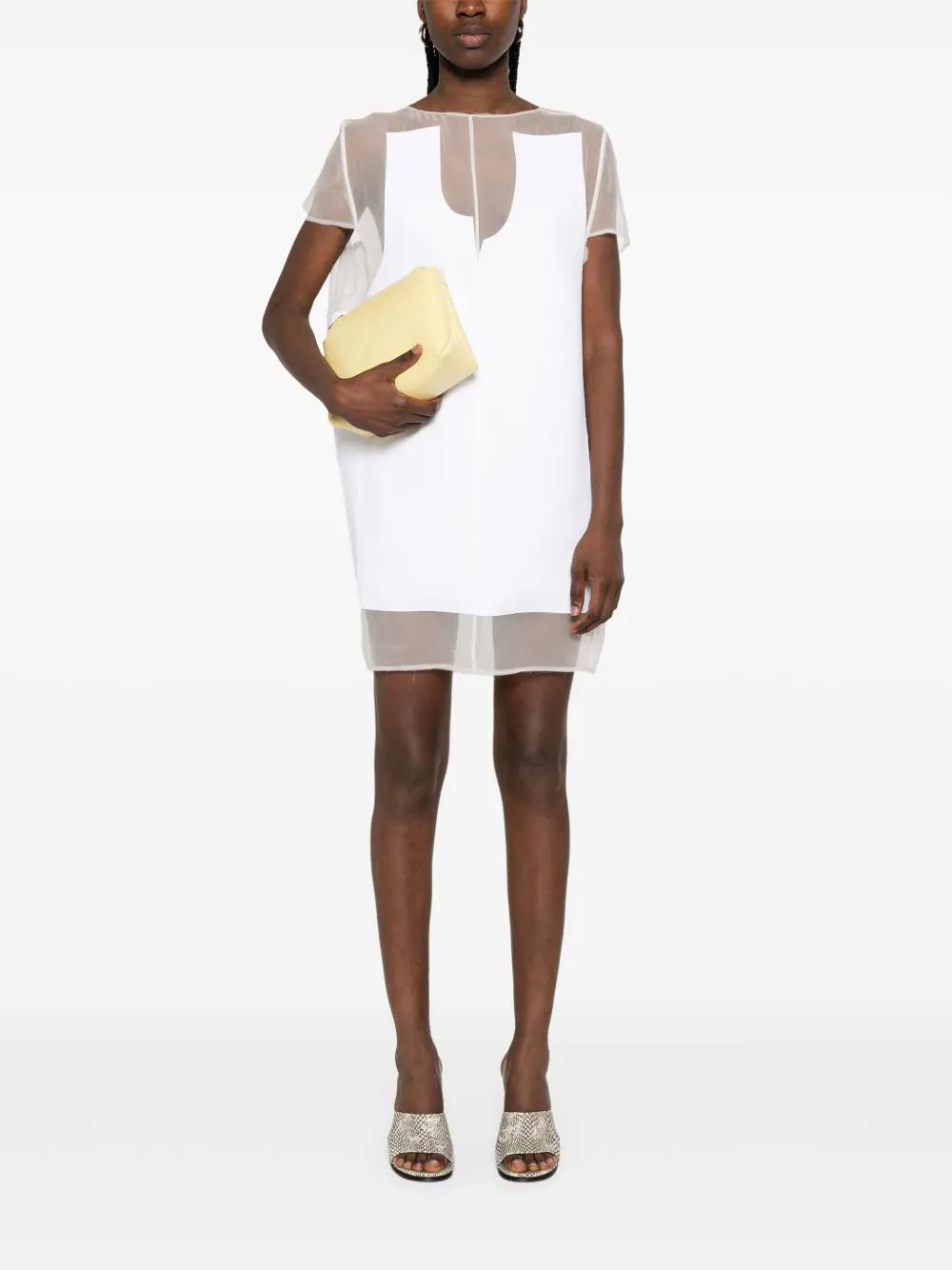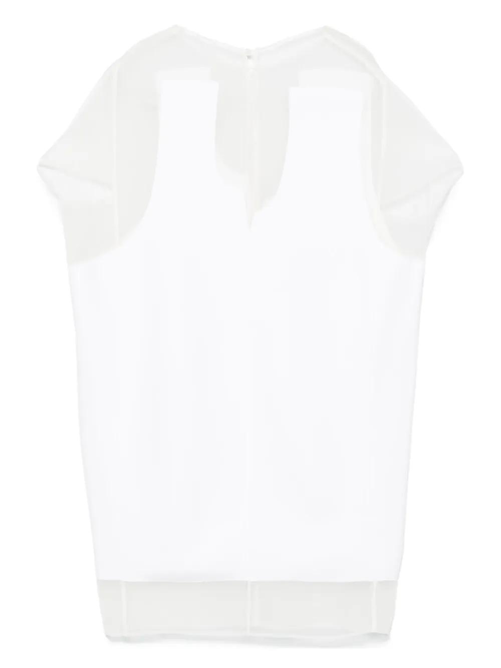 white single rear button fastening short sleeves semi-sheer panels raw-cut edge