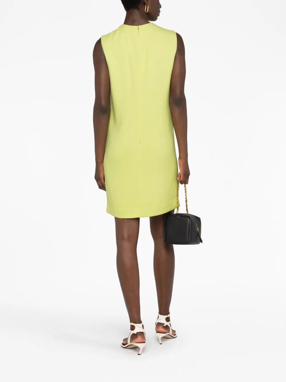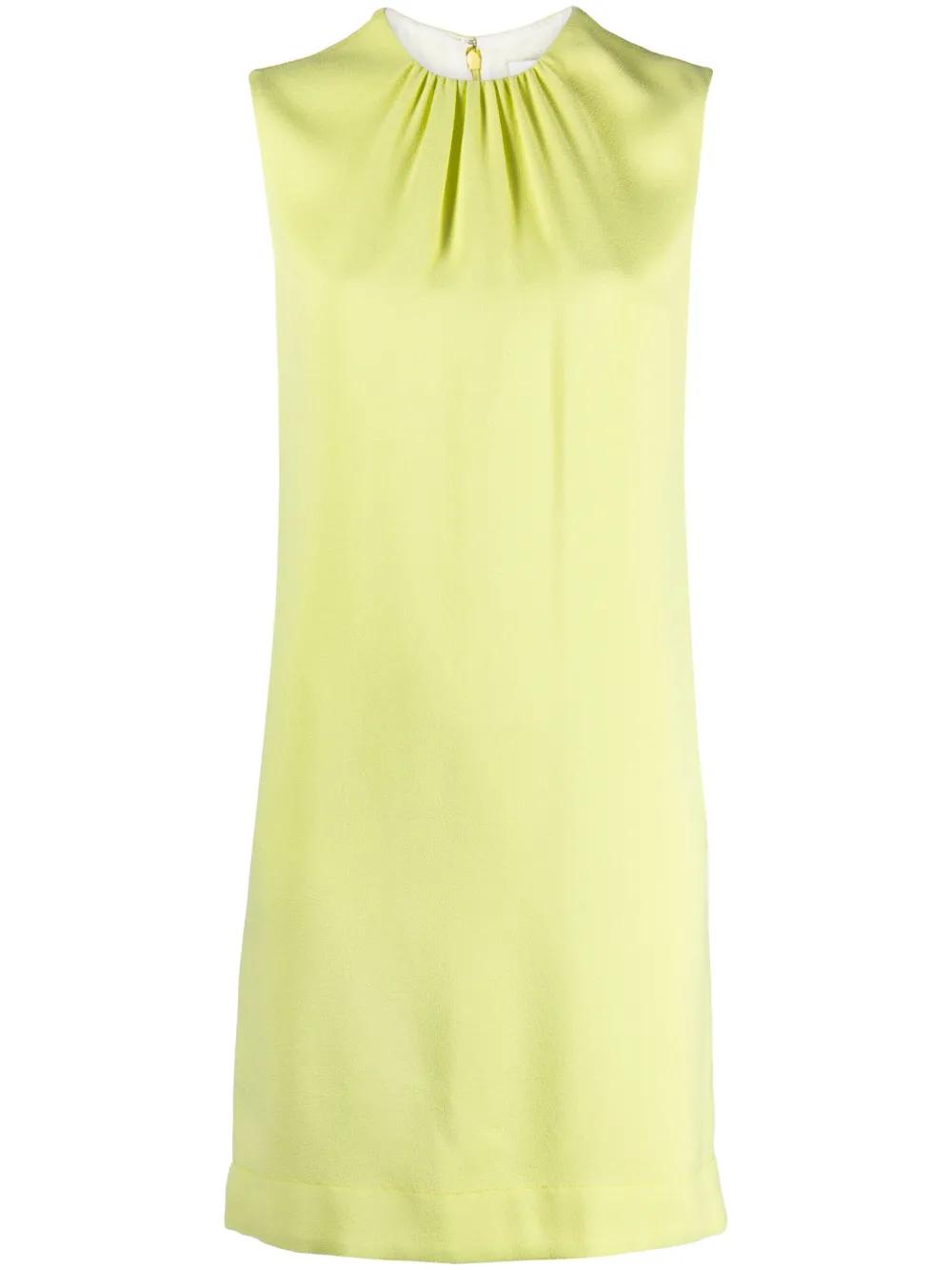 yellow round neck gathered detailing concealed rear zip fastening sleeveless thigh-length straight hem