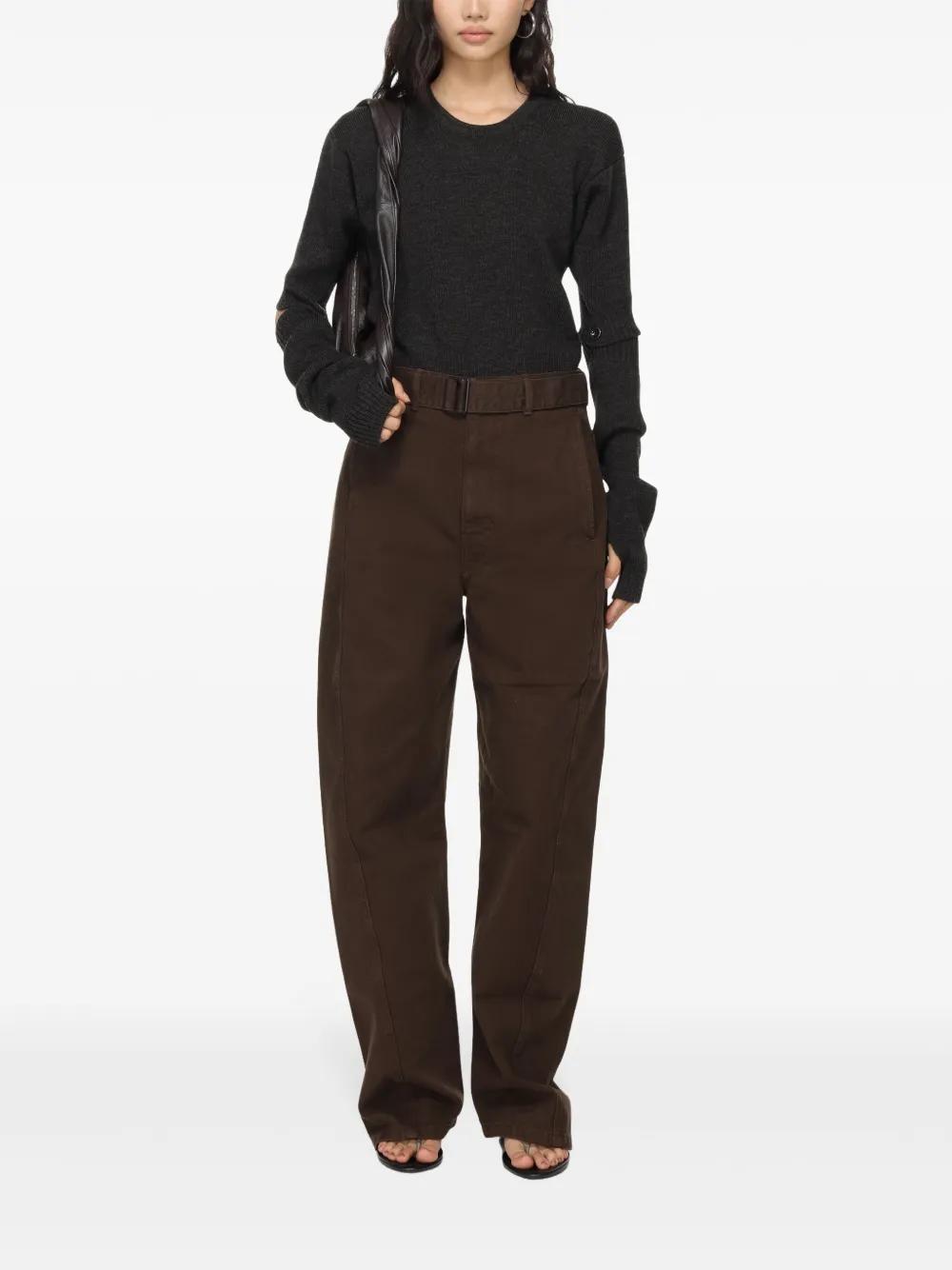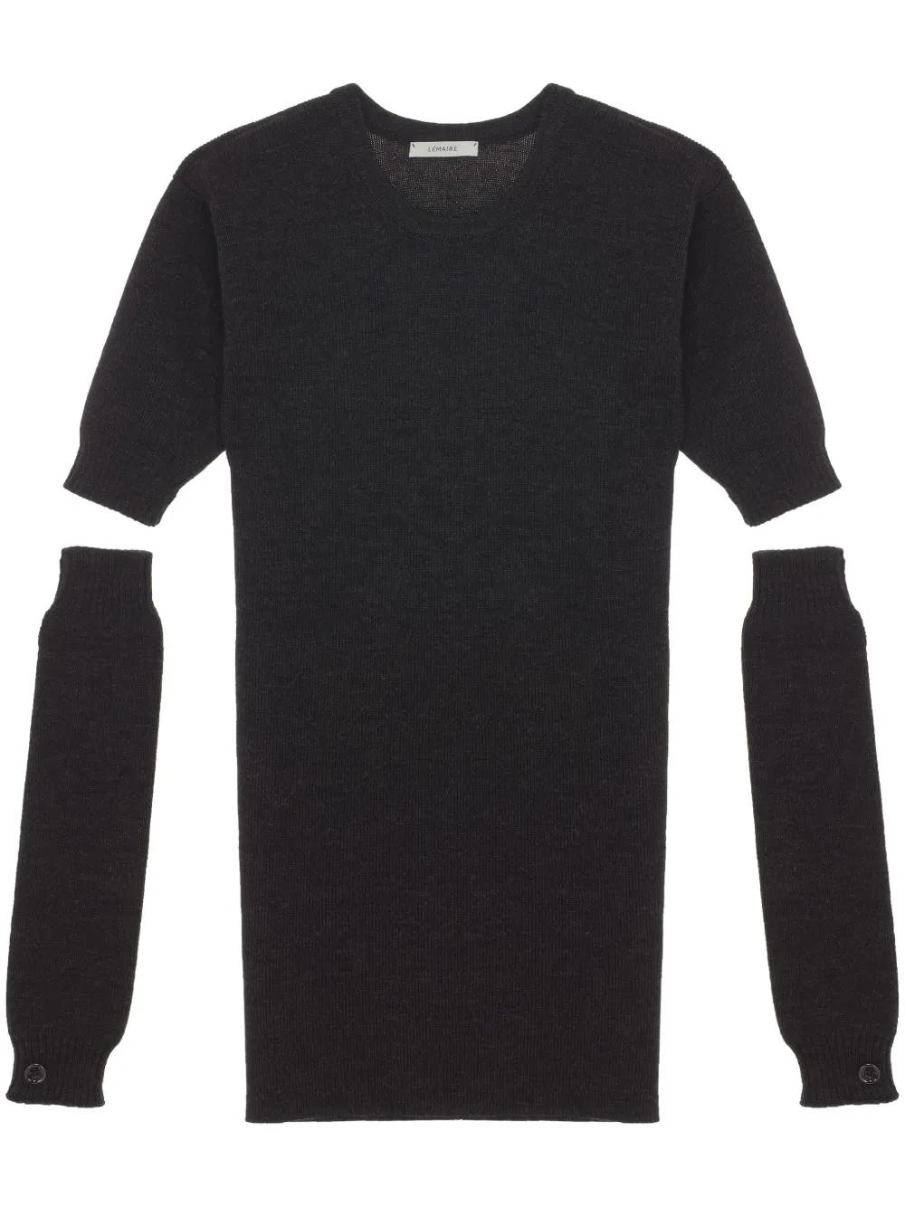 brown wool blend knitted construction crew neck detachable sleeves ribbed cuffs and hem straight hem