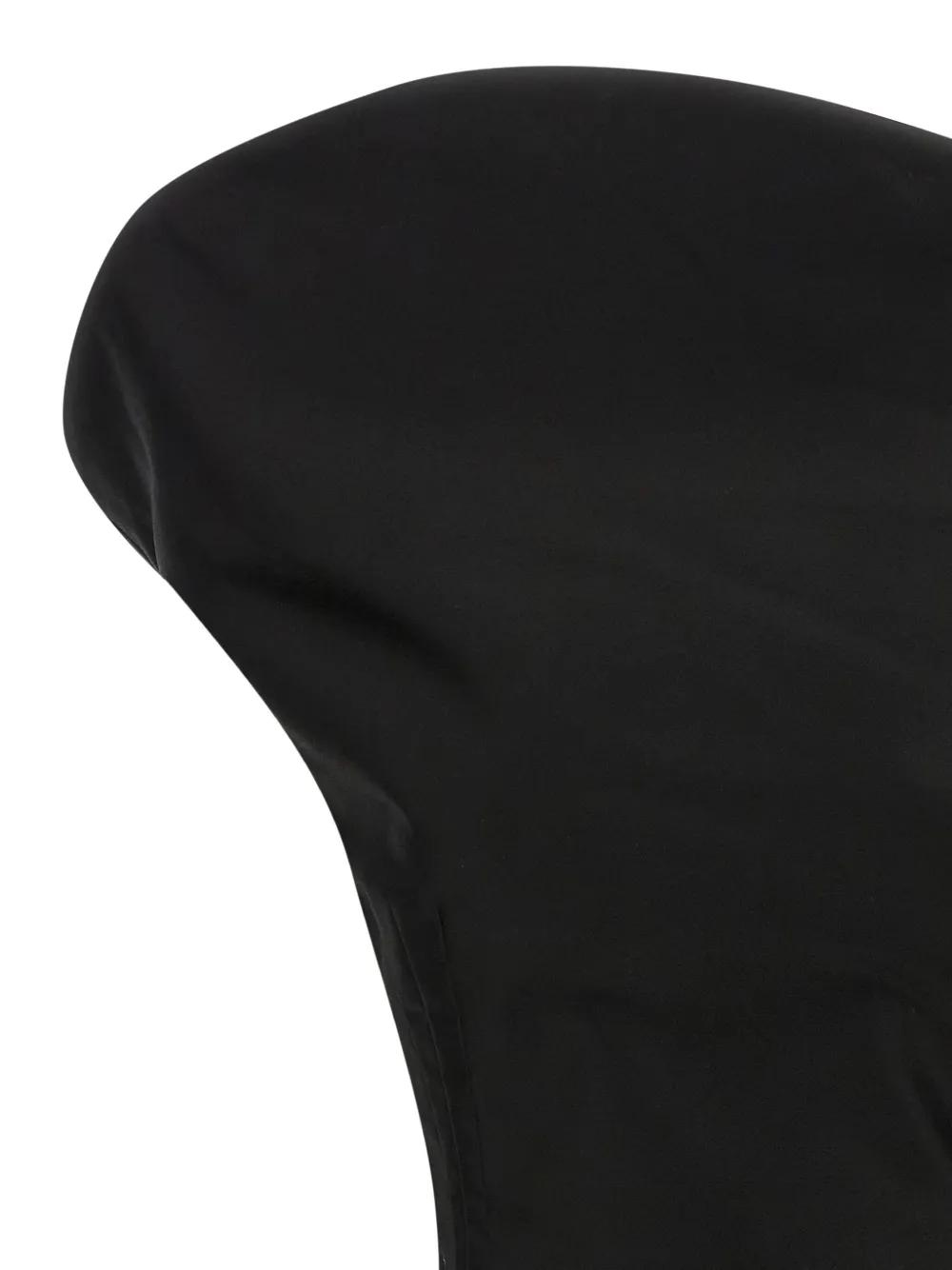 black dropped shoulder straps 3D reinforced hips asymmetrical neckline sculpted shape back zip closure