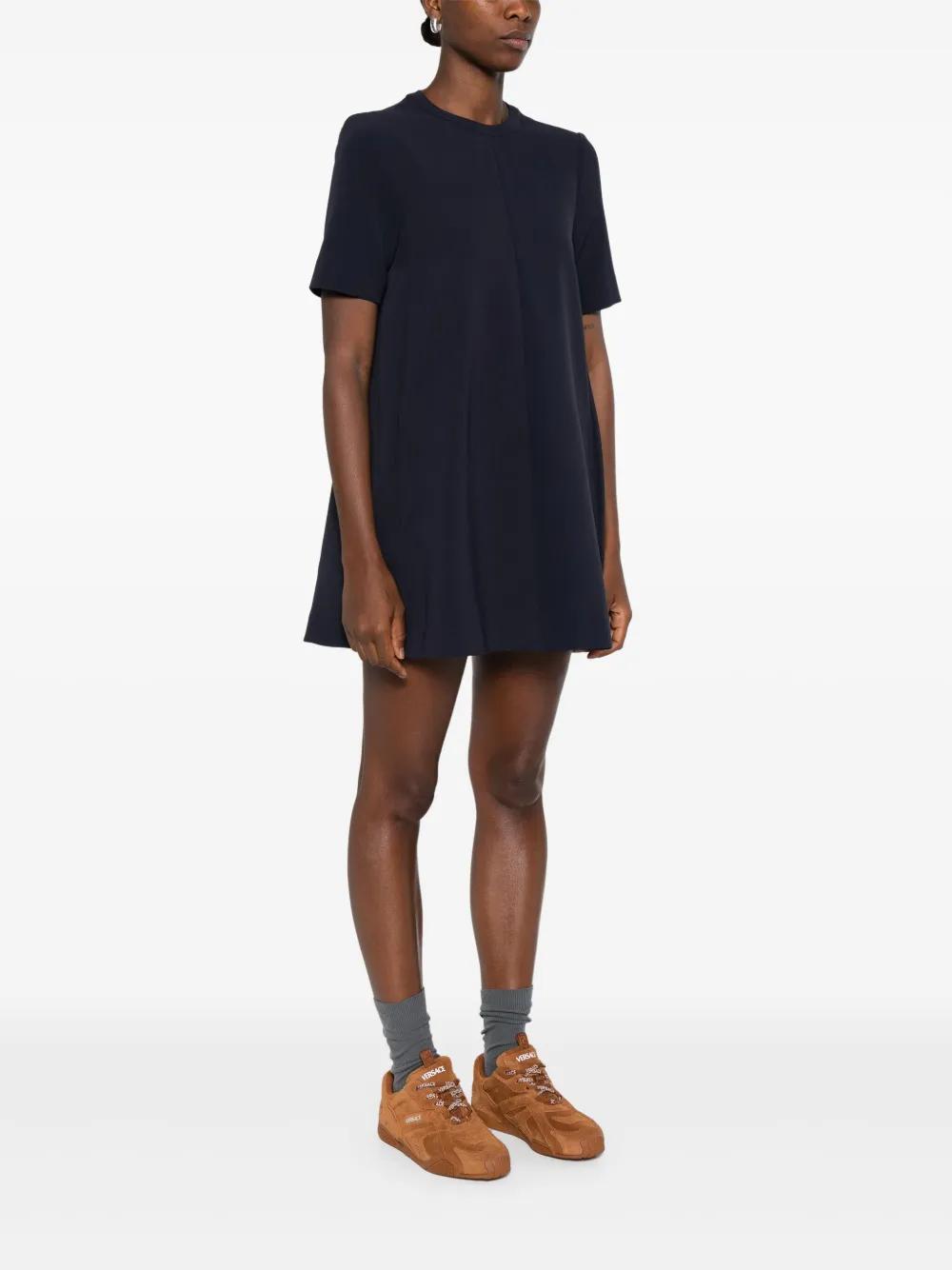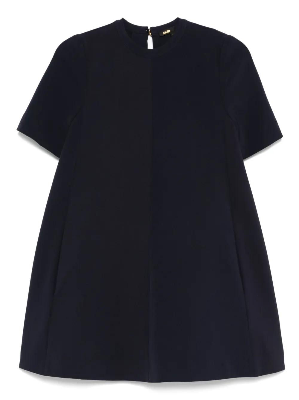 navy blue rear button fastening round neck short sleeves keyhole detail to the rear