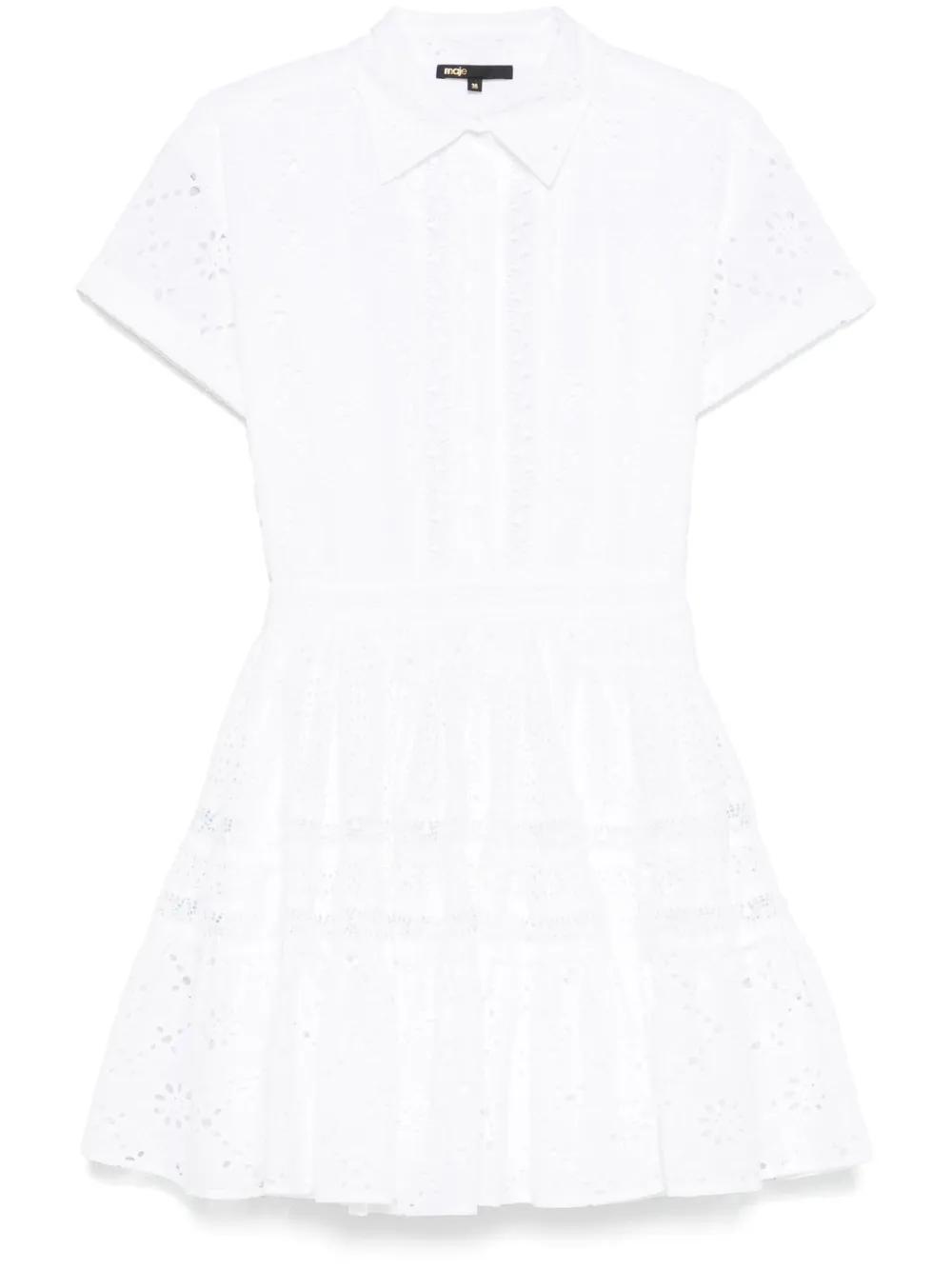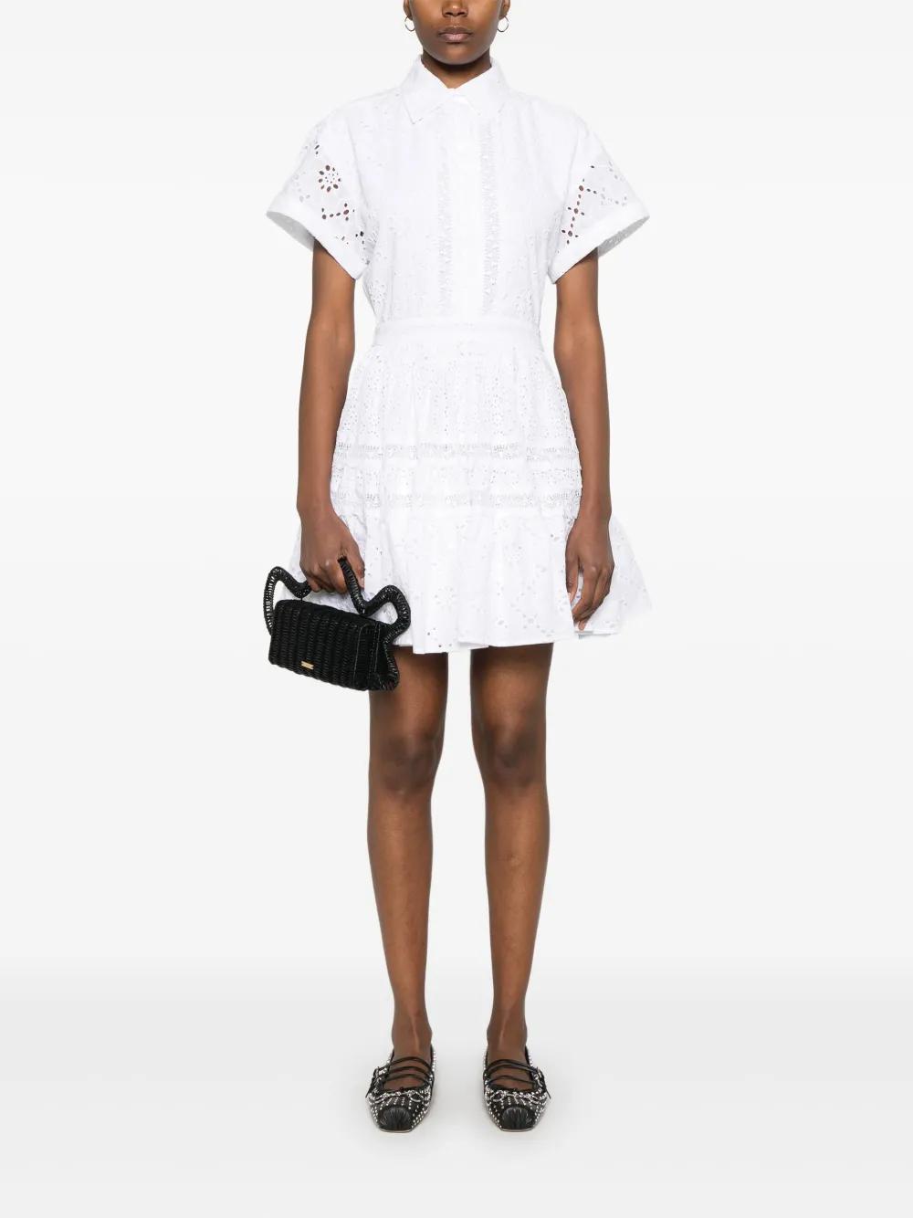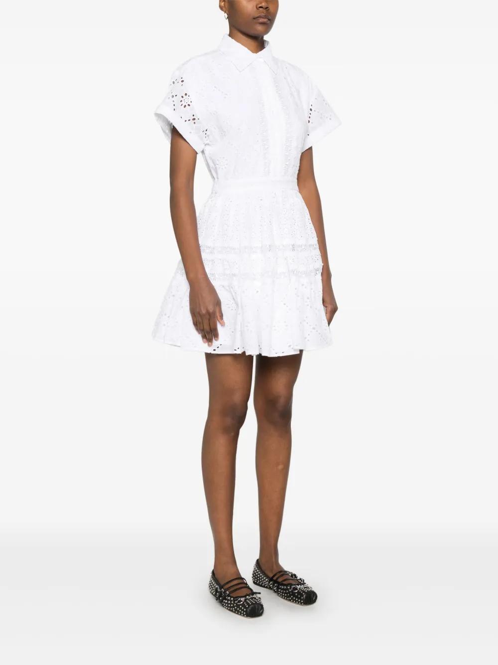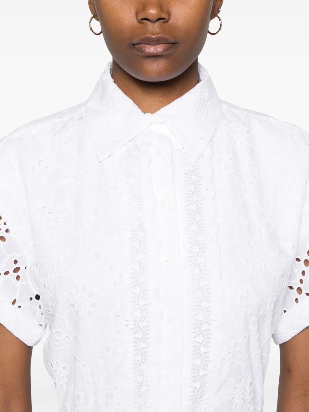 white front button fastening rear elasticated waistband classic collar short sleeves