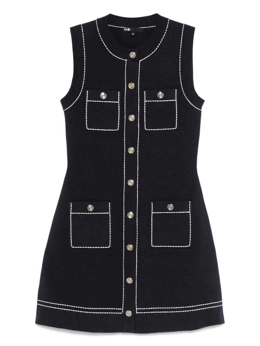 navy blue front button fastening four front patch pockets round neck sleeveless