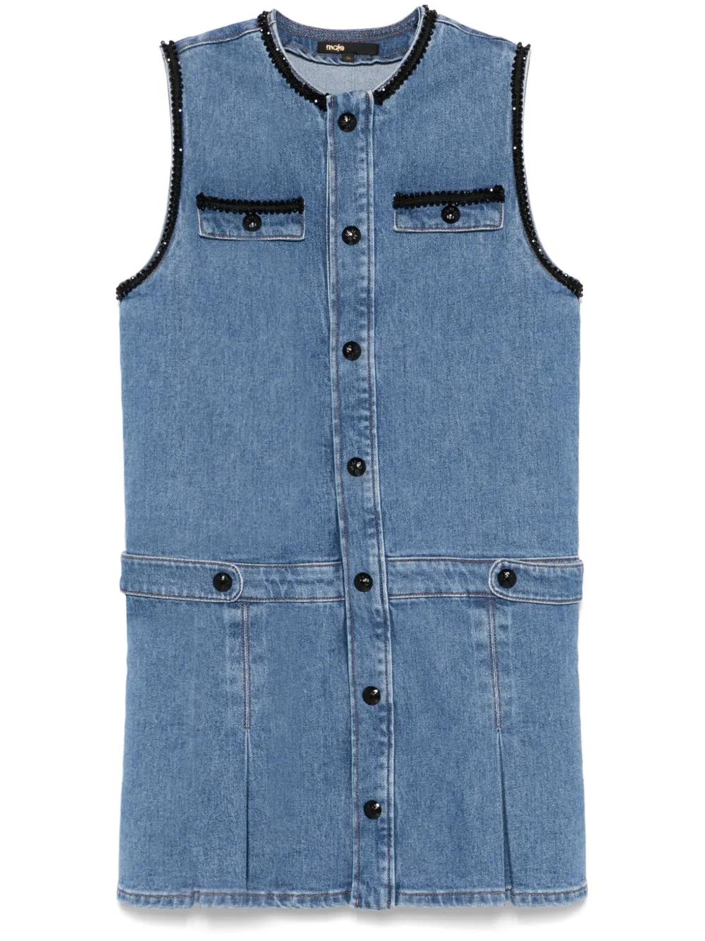 ocean blue front press-stud fastening inverted pleat faux pocket detail waist tabs