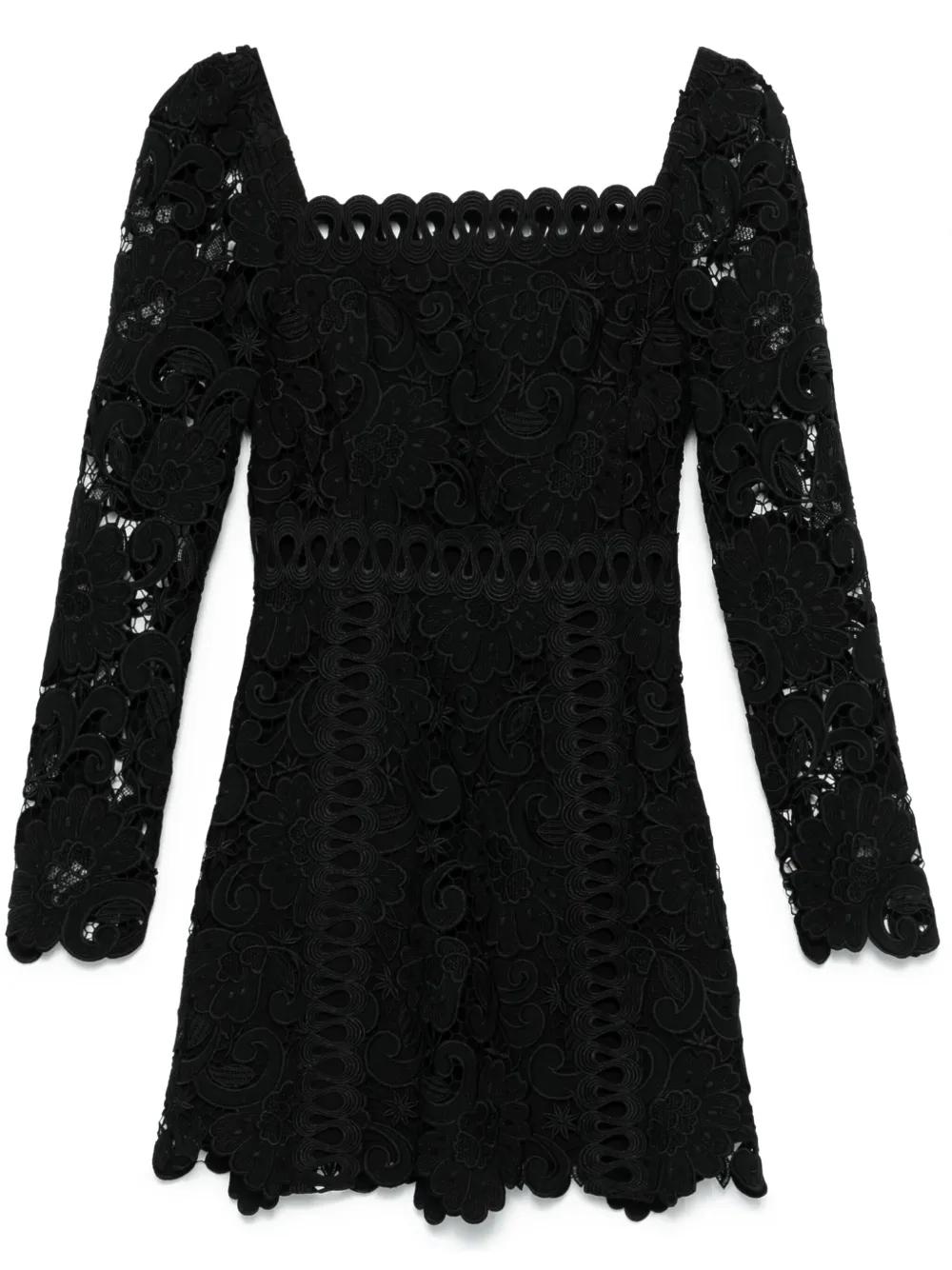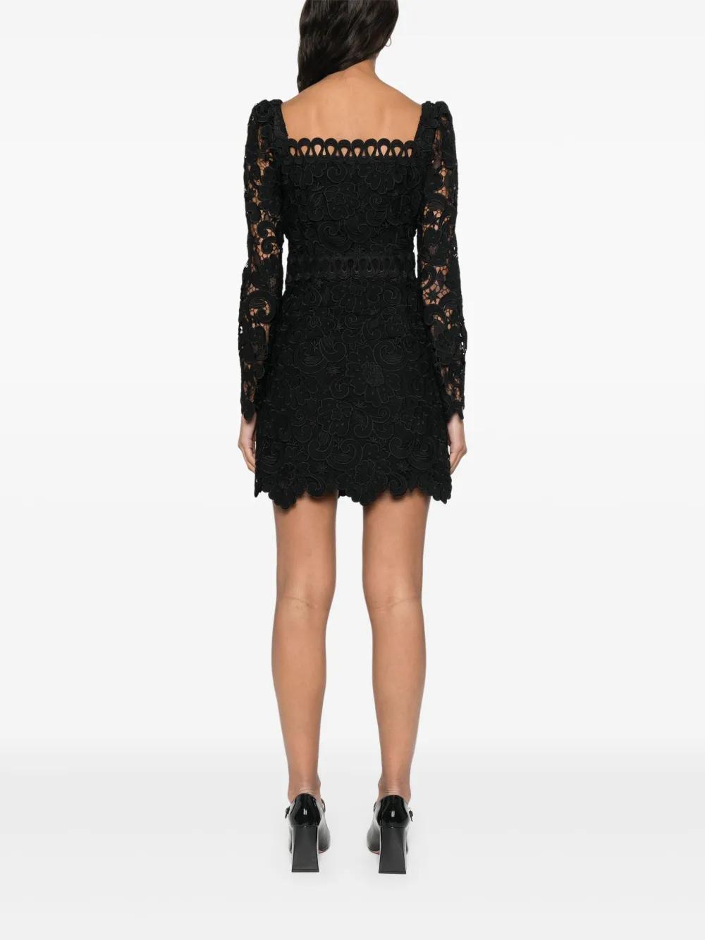 black concealed side zip fastening square neck long sheer sleeves partial lining