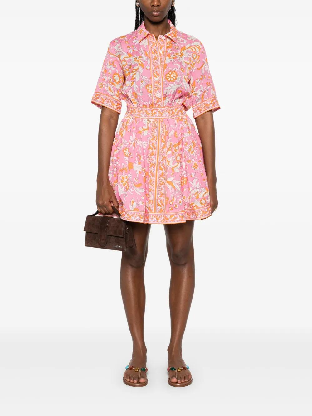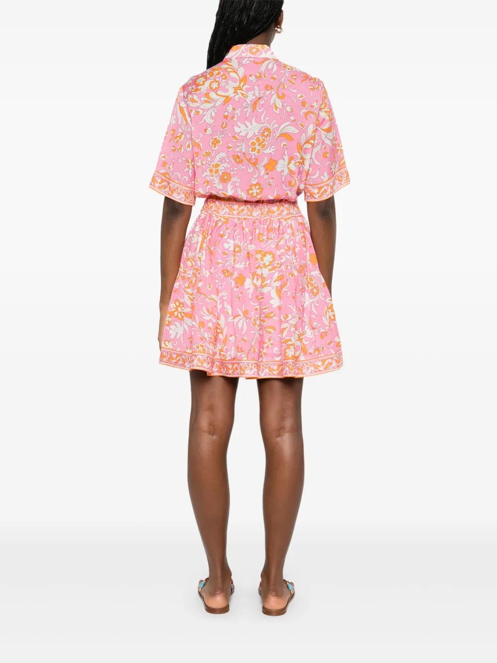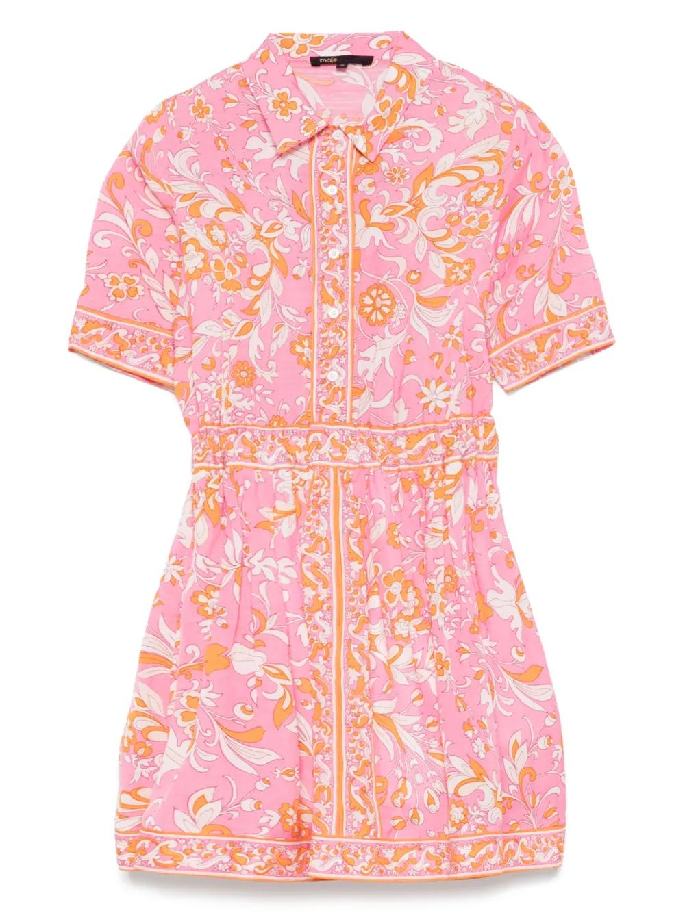 bubblegum pink short front button fastening elasticated waistband two side inset pockets short sleeves