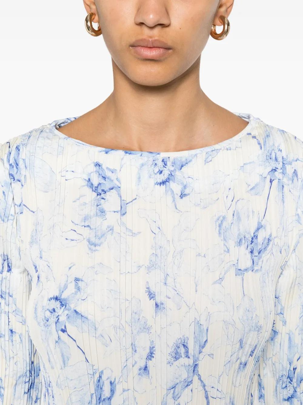 blue crew neck long sleeves all-over floral print