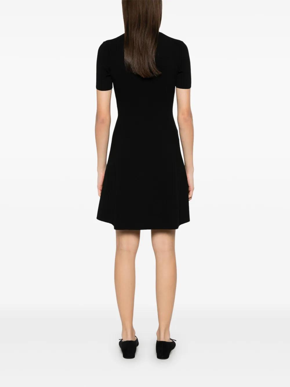 black front press-stud fastening scoop neck short sleeves flared skirt