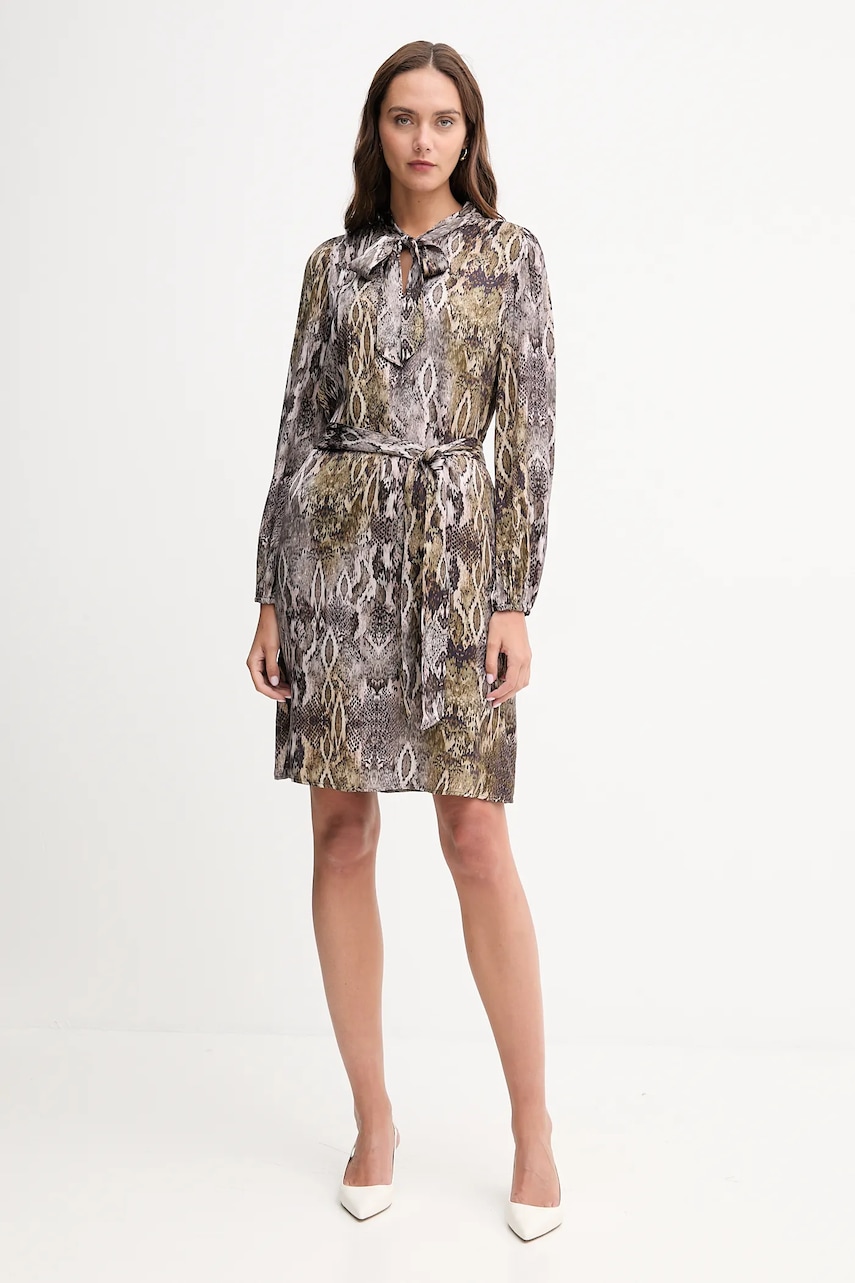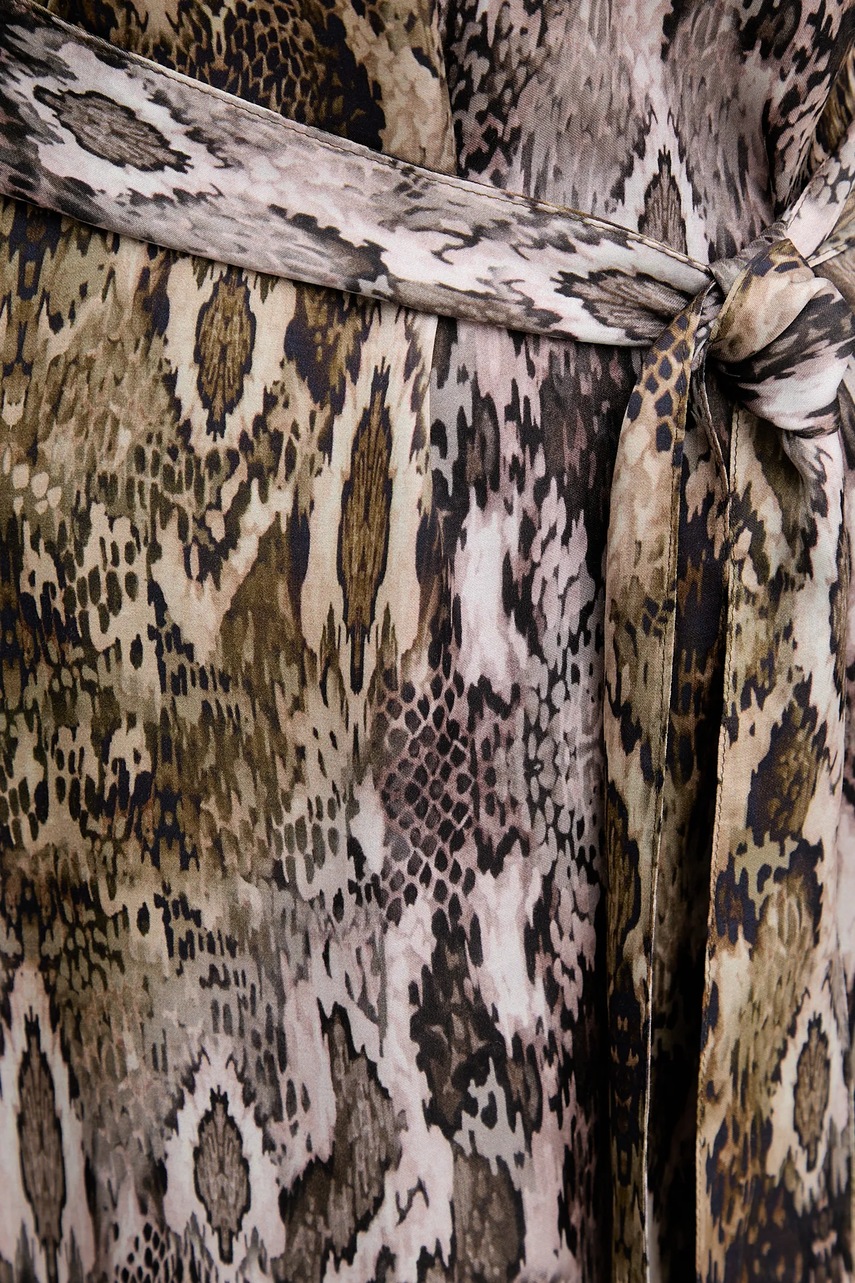 - Rozkloszowany fason. - Ozdobny, spiczasty dekolt. - Ozdobne wiązanie przy dekolcie. - Długie rękawy wykończone wygodnym, elastycznym ściągaczem. - Dwie wsuwane kieszenie boczne. - Dołączony tekstylny pasek. - Model z wiązaniem umożliwiającym regulację. - Model bez podszewki. - Płaskie szwy chronią skórę przed otarciami i podrażnieniami. - Długość rękawa: 63,5 cm. - Długość: 98 cm. - Szerokość pod pachami: 53 cm. - Szerokość w talii: 54 cm. - Wymiary podane dla rozmiaru: 36.