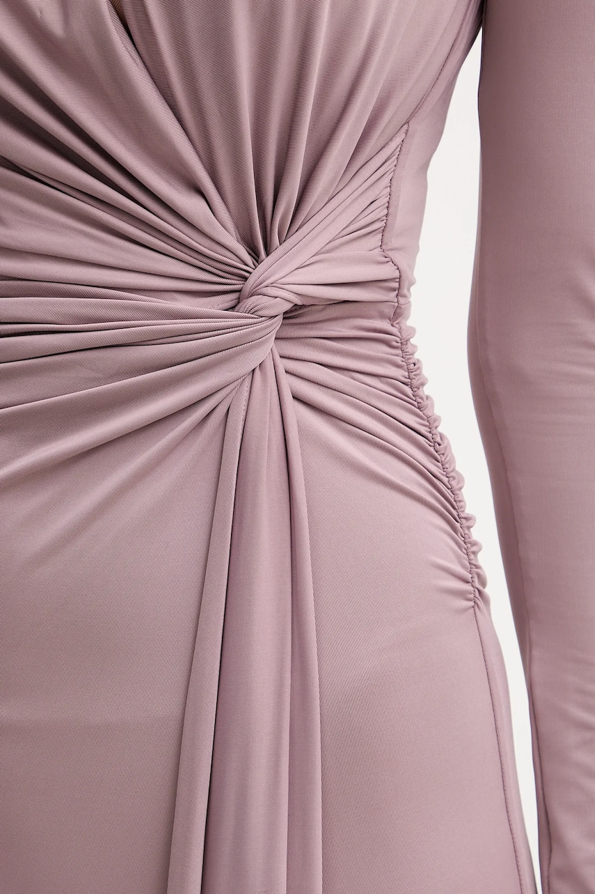 - Dopasowany fason z efektownymi marszczeniami. - Model o długości mini. - Długie rękawy. - Okrągły dekolt. - Z tyłu zapięcie na kryty suwak i haftkę. - Długość rękawa: 58 cm. - Długość: 83 cm. - Szerokość pod pachami: 36 cm. - Wymiary podane dla rozmiaru: 40.