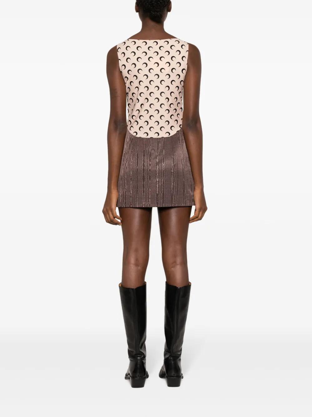 chocolate brown recycled polyester blend panelled design crescent moon print square neck sleeveless straight hem thigh-length
