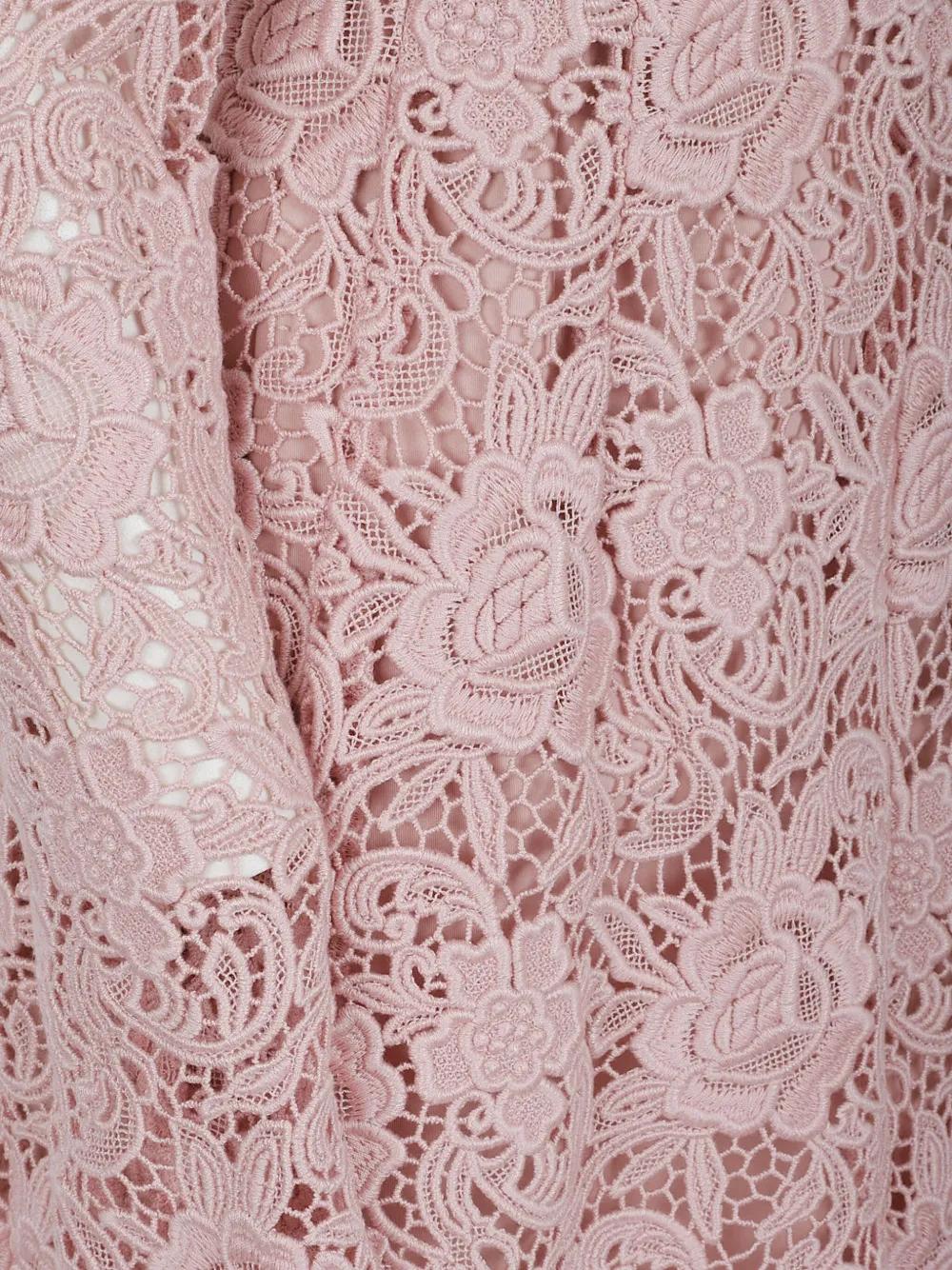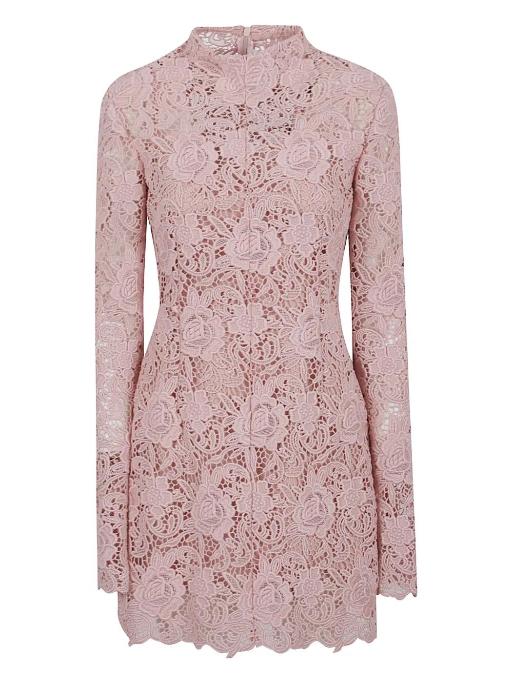 pink floral lace long sleeves high neck scalloped hem zip fastening