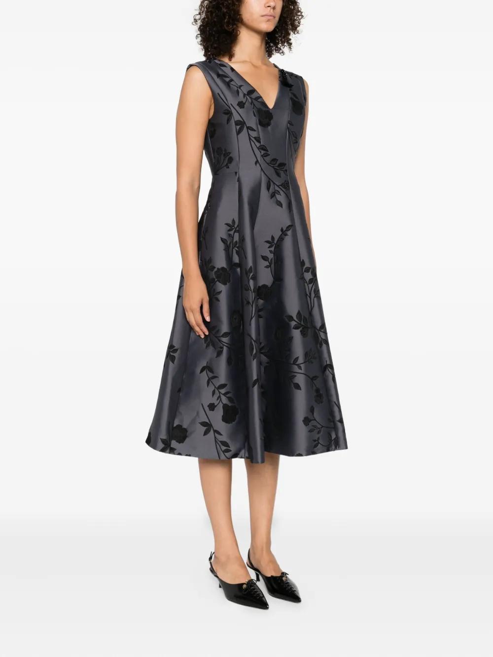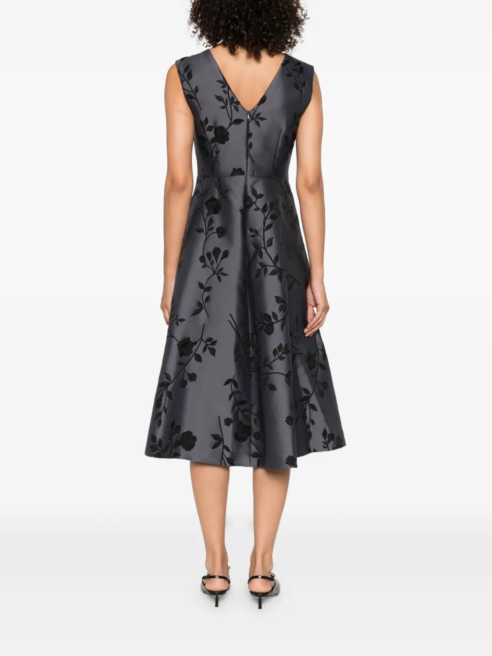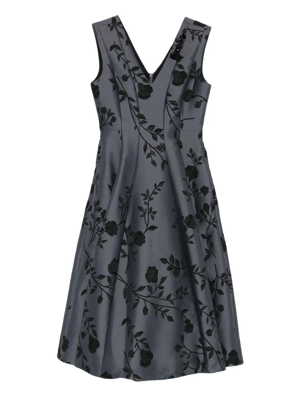 grey floral pattern V-neck sleeveless A-line skirt velvet embellishment