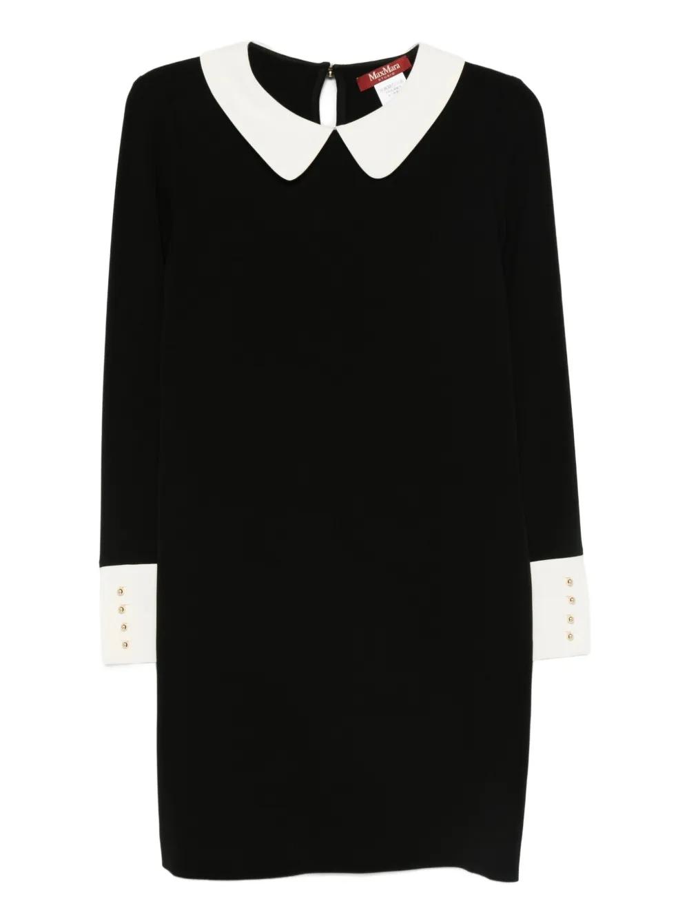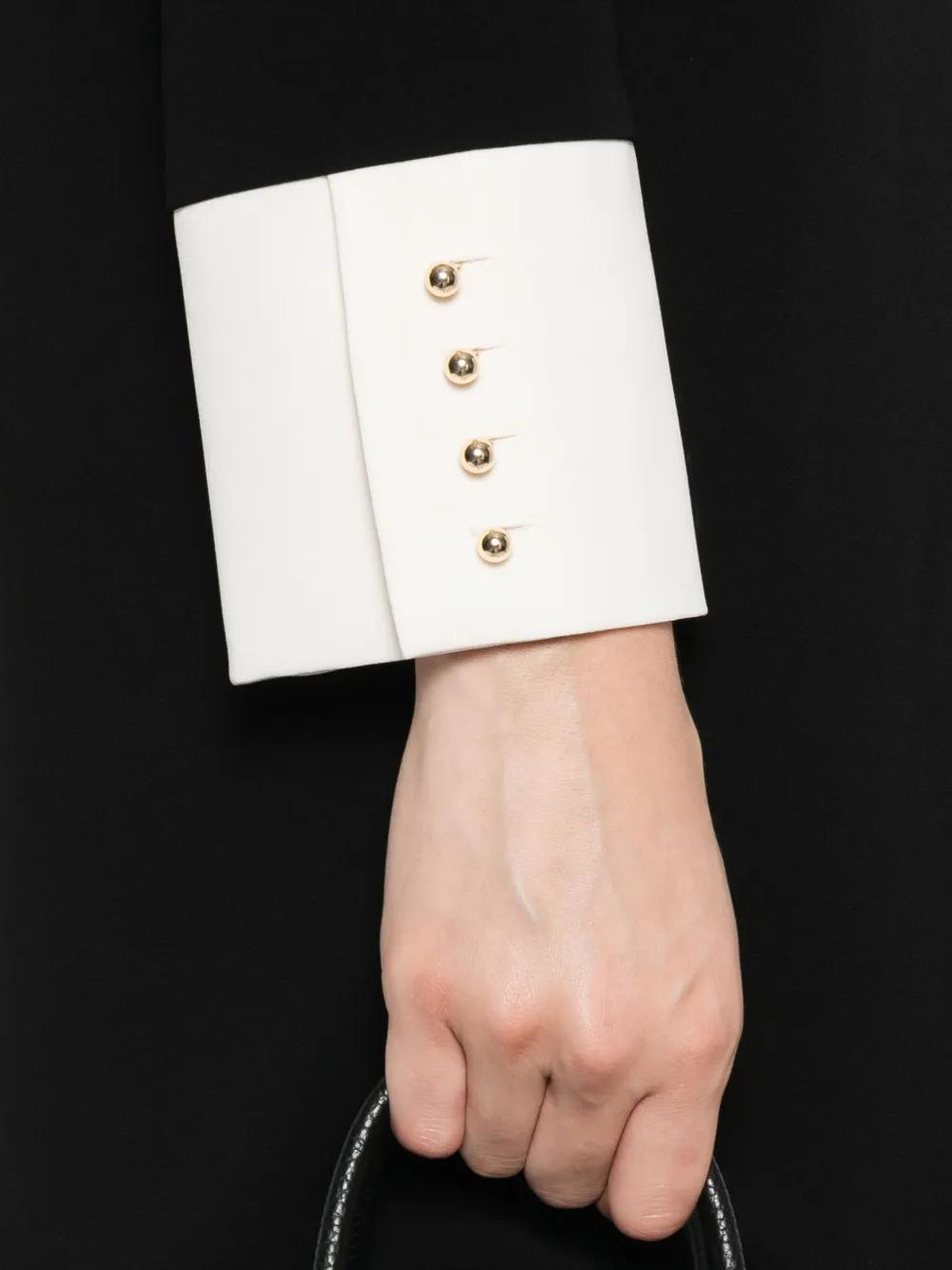 black Peter Pan collar three-quarter sleeves cuff detail gold-tone button embellishment straight hemline