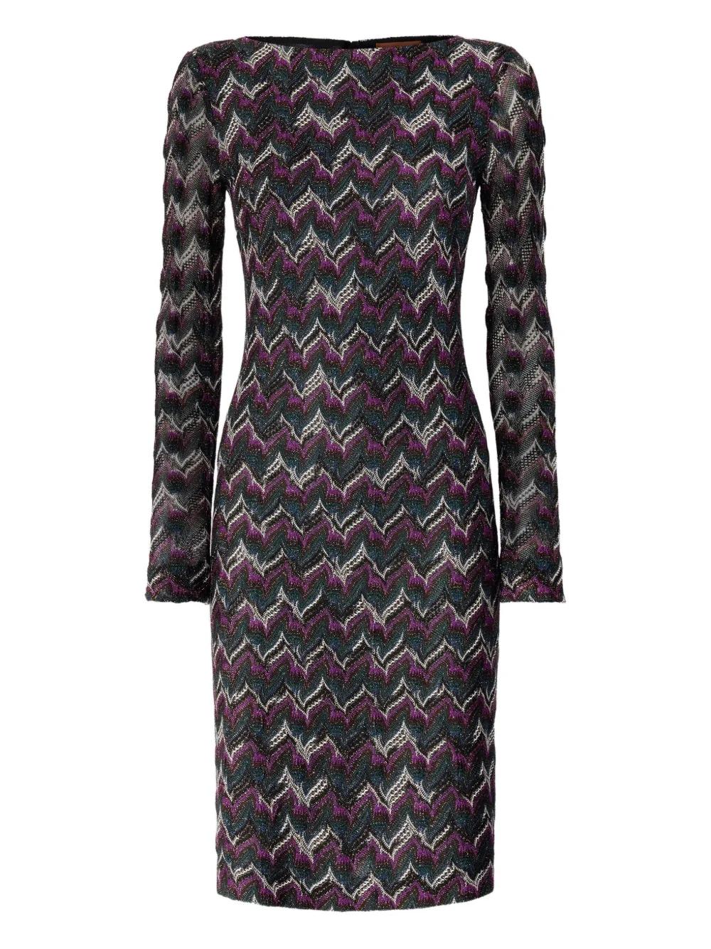 Missoni zigzag-pattern long-sleeve mini dress - Blue