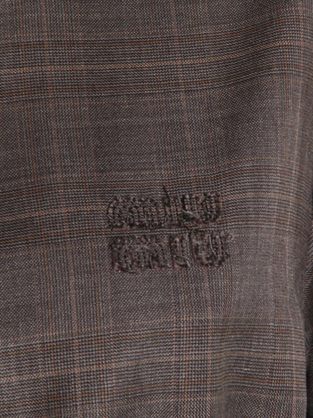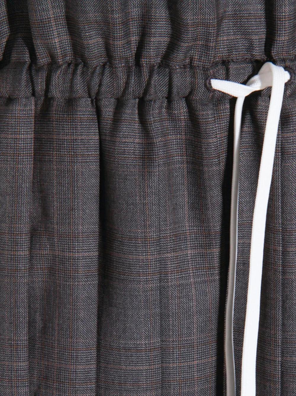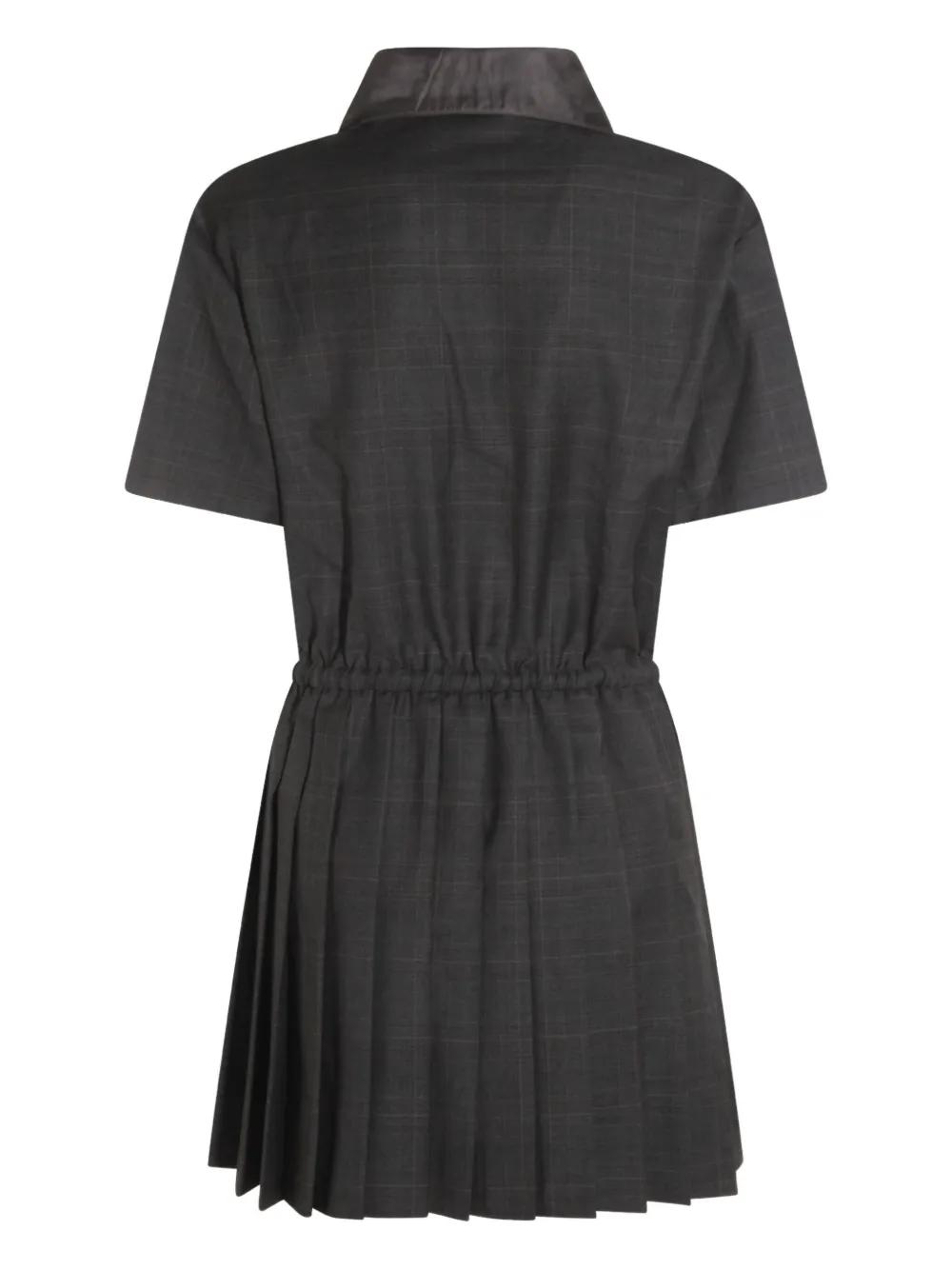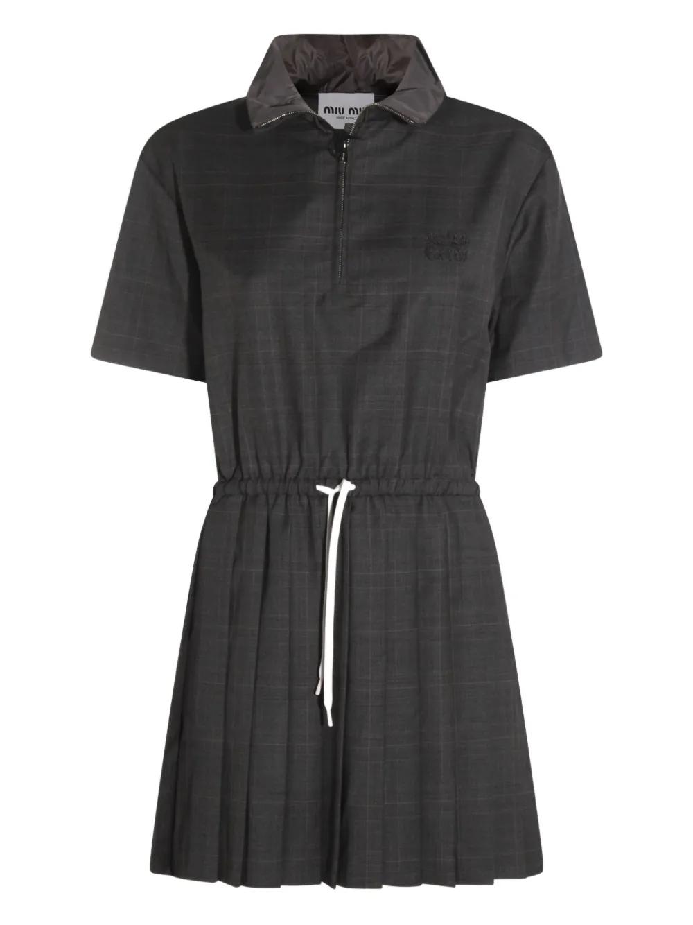 dark grey check pattern short sleeves drawstring waist pleated skirt embroidered logo