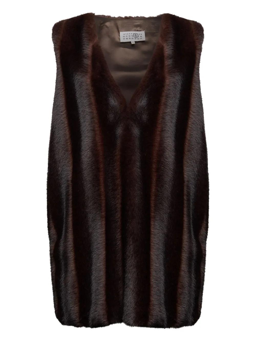 dark brown V-neckline striped design sleeveless slightly oversized fit