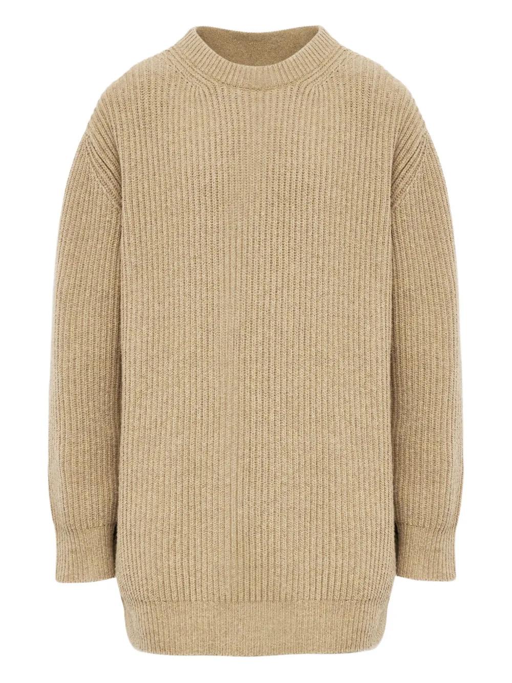 beige ribbed knit crew neck dropped shoulders long sleeves