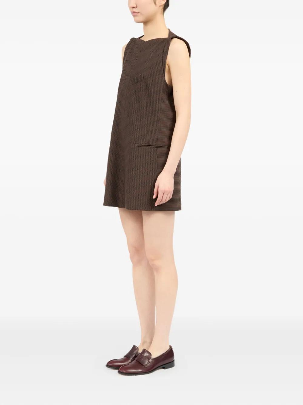 coffee brown concealed rear zip fastening boat neck sleeveless two front jetted pockets
