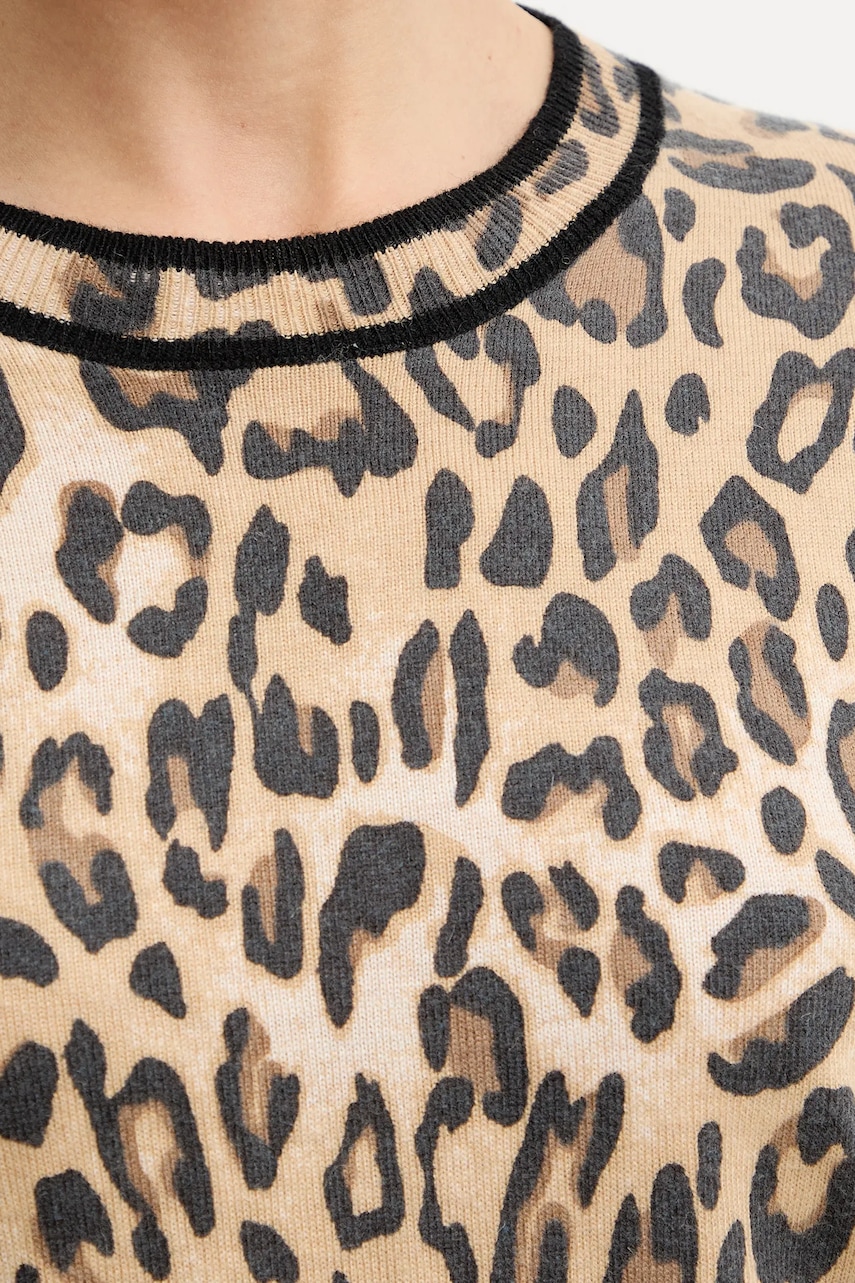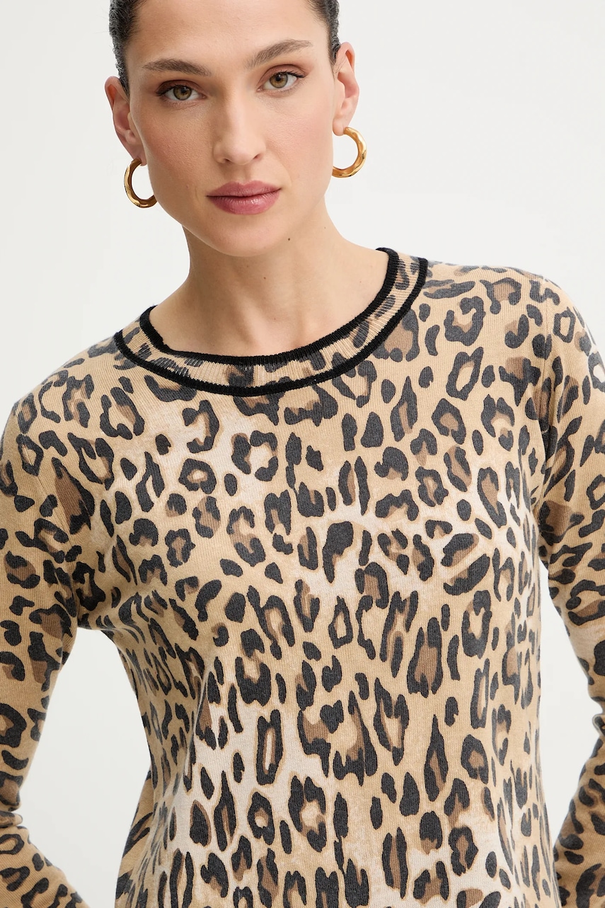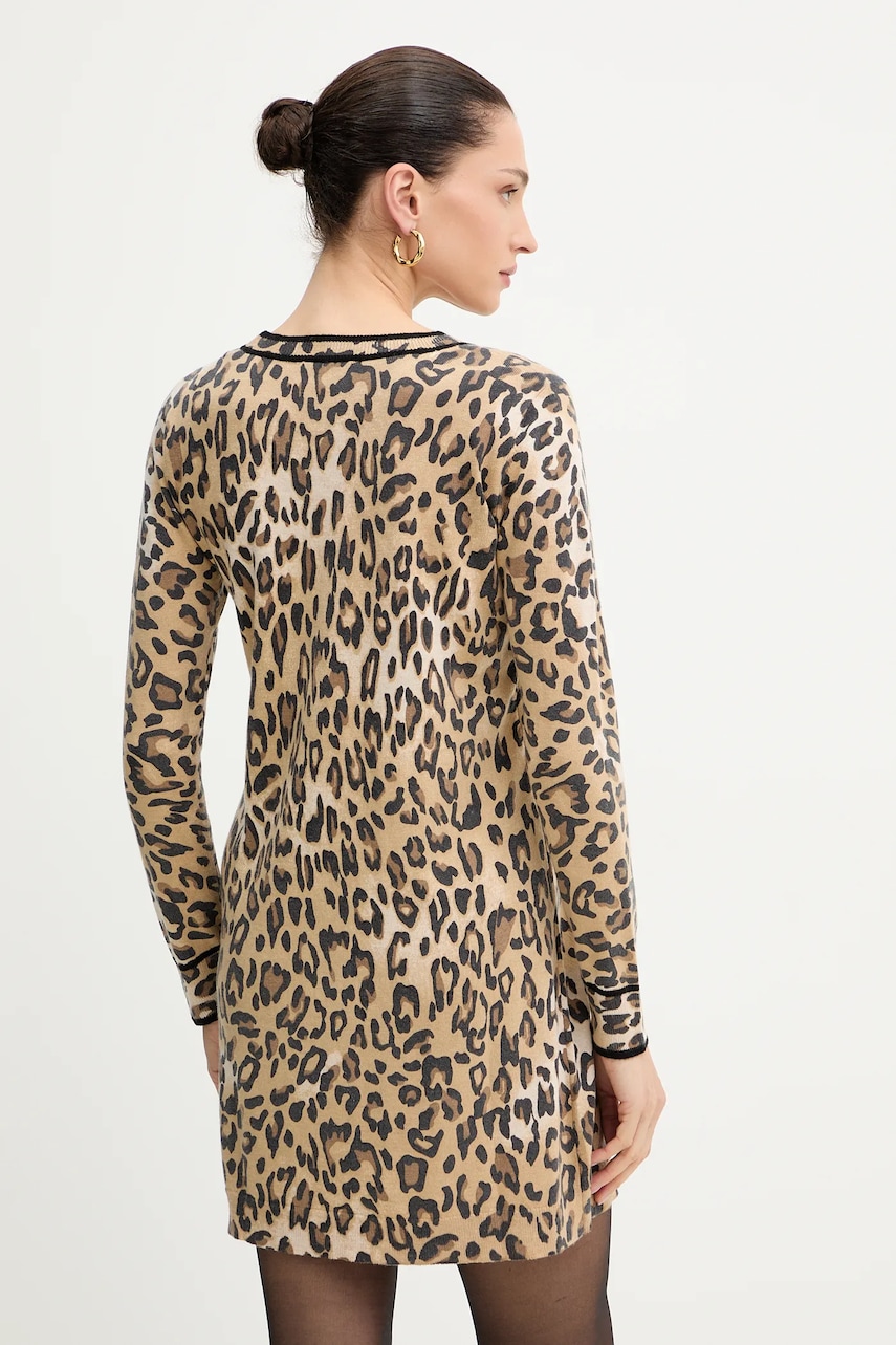 - Prosty fason. - Długie rękawy. - Okrągły dekolt. - Wzór z motywem zwierzęcym. - Cienka, lekko elastyczna dzianina. - Długość: 83 cm. - Długość rękawa: 58 cm. - Szerokość pod pachami: 48 cm. - Wymiary podane dla rozmiaru: S.