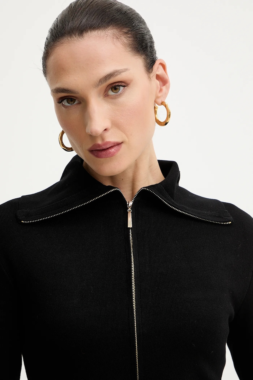 - Elastyczna dzianina o średniej grubości. - Model o długości mini. - Zapięcie na suwak. - Model z golfem. - Długość: 85 cm. - Długość rękawa: 45 cm. - Szerokość pod pachami: 39 cm. - Wymiary podane dla rozmiaru: S.