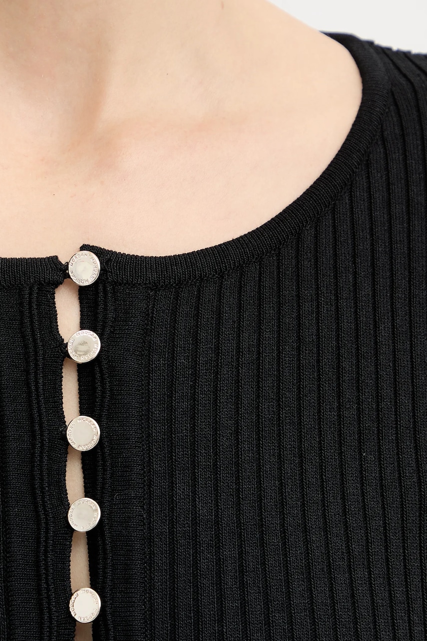 - Produkt częściowo wykonany z LENZING™ ECOVERO™ - materiału przyjaznego środowisku. Produkcja LENZING™ ECOVERO™ z ekologicznej celulozy i pulpy drzewnej wykorzystuje o 50% mniej wody w porównaniu do popularnej wiskozy. - Dopasowana góra i rozkloszowany dół. - Krótkie zapięcie na guziki. - Prążkowana struktura materiału sprawia, że jest on niezwykle elastyczny i doskonale przylega do ciała. - Plisowane wstawki. - Długość rękawa: 60 cm. - Długość: 92 cm. - Szerokość pod pachami: 33 cm. - Wymiary podane dla rozmiaru: S.