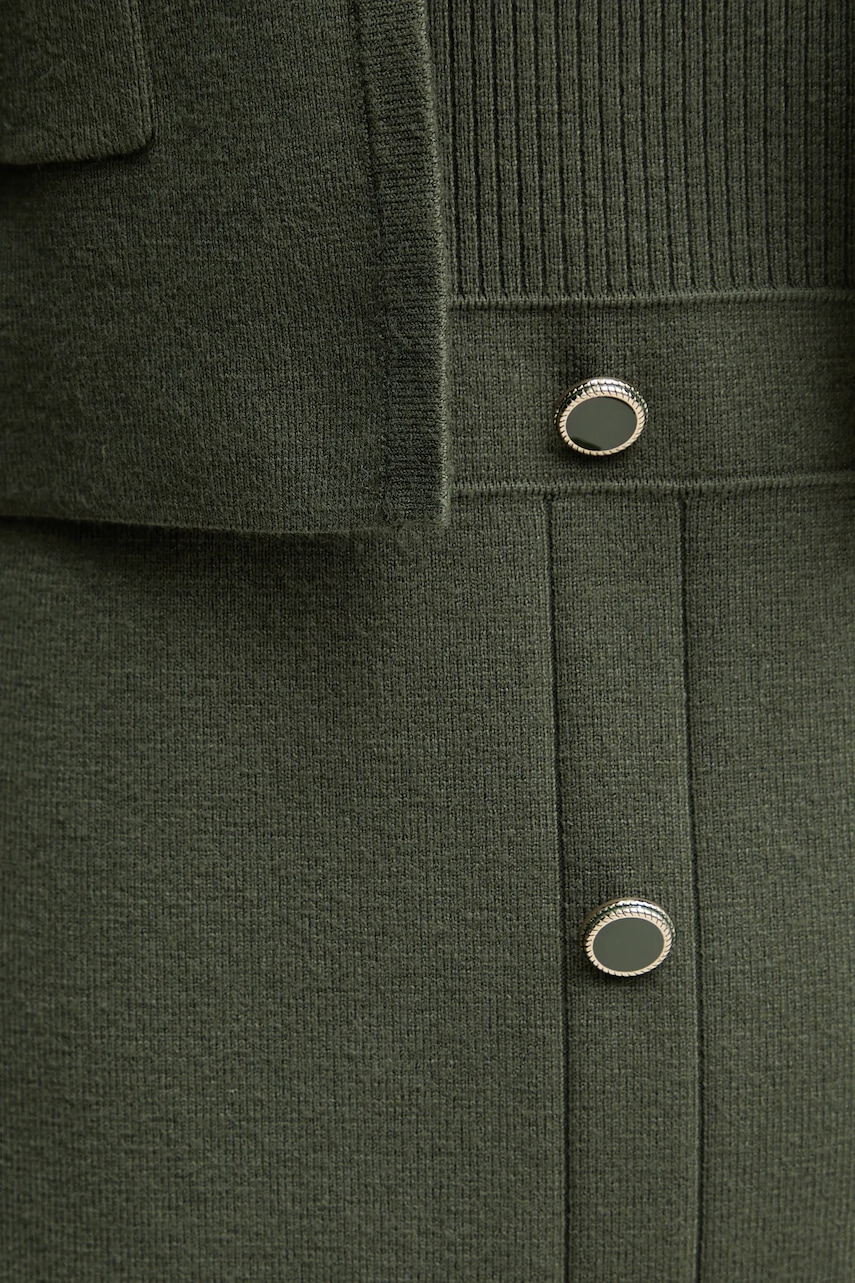 - Produkt częściowo wykonany z LENZING™ ECOVERO™ - materiału przyjaznego środowisku. Produkcja LENZING™ ECOVERO™ z ekologicznej celulozy i pulpy drzewnej wykorzystuje o 50% mniej wody w porównaniu do popularnej wiskozy. - Dopasowany, podkreślający sylwetkę fason. - Klasyczny, okrągły dekolt. - Elastyczna dzianina o średniej grubości. - Długość rękawa: 59 cm. - Szerokość pod pachami: 40/43 cm. - Szerokość w talii: 34 cm. - Długość: 85/40 cm. - Wymiary podane dla rozmiaru: S.