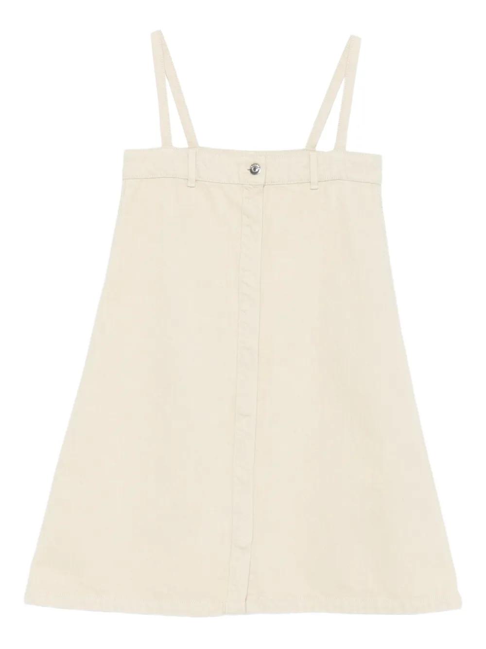 beige A-line sleeveless button front fastening straight hem